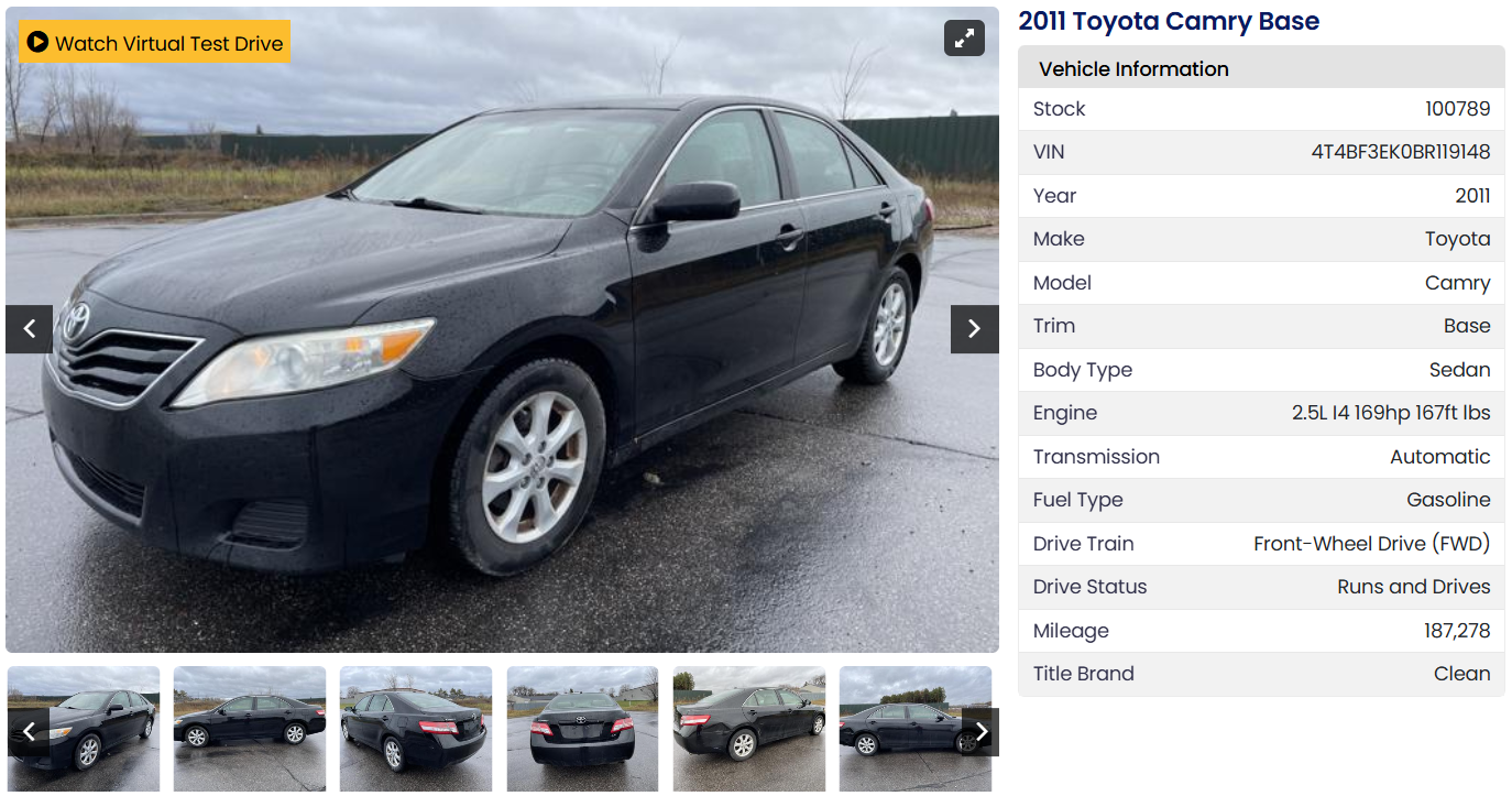 - Amplia Selección: Una variedad de Toyotas usados y otros vehículos están disponibles, incluyendo autos de salvamento, excedentes gubernamentales y vehículos embargados por la policía.