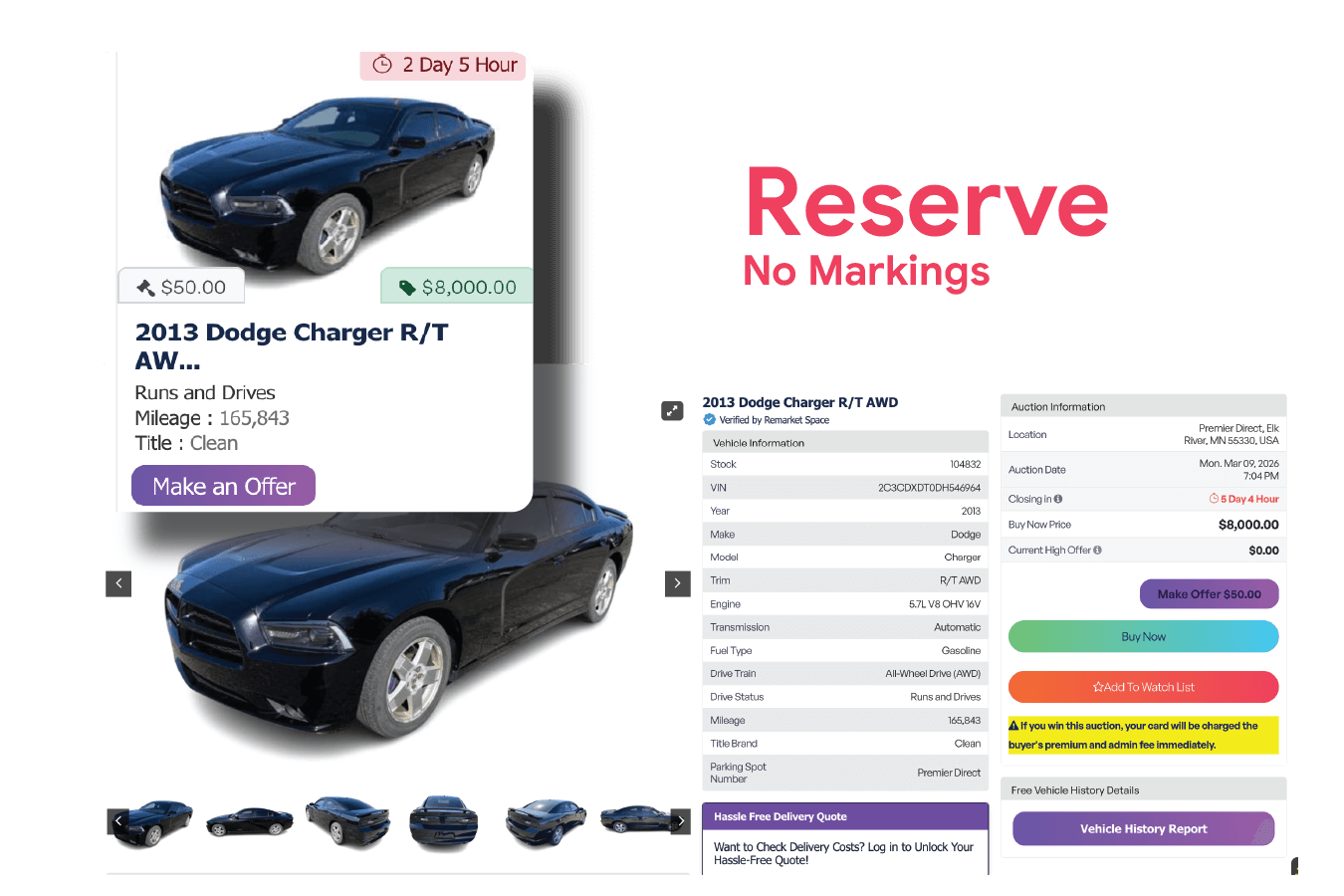 – Vehicles with reserves do not show the No Reserve icon