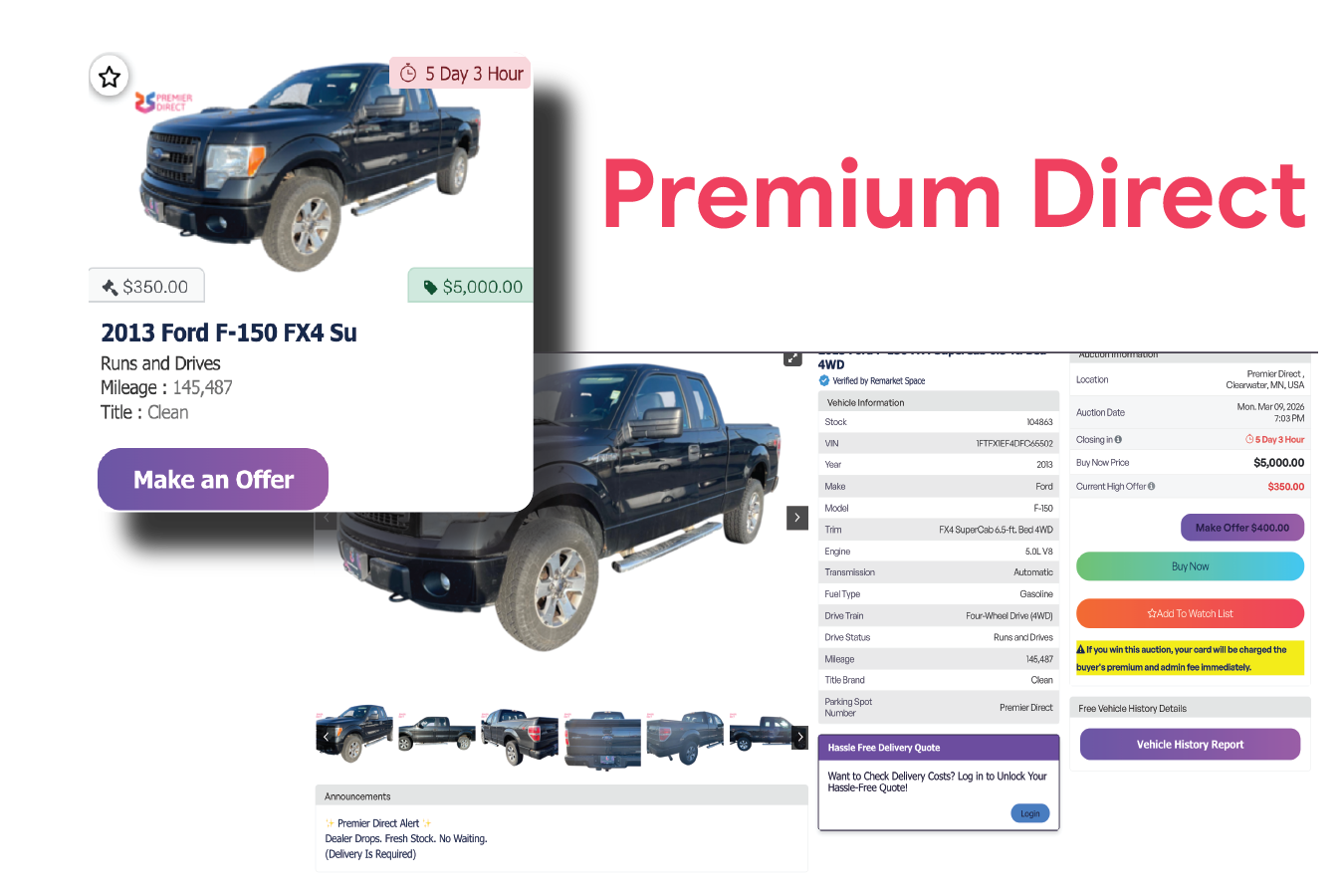 Vehicles sourced from dealerships are labeled Premium Direct.