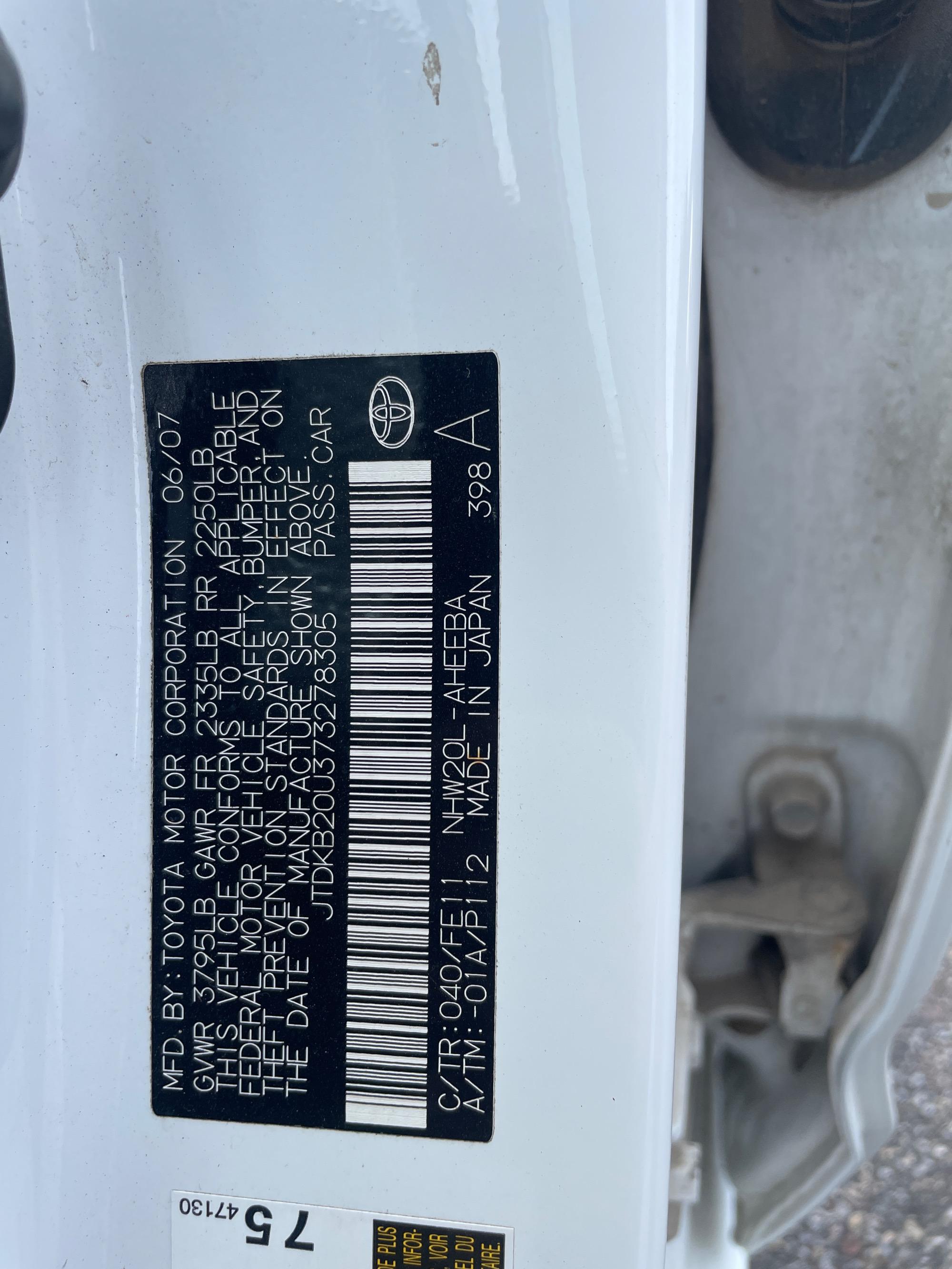 VIN | JTDKB20U373278305 |