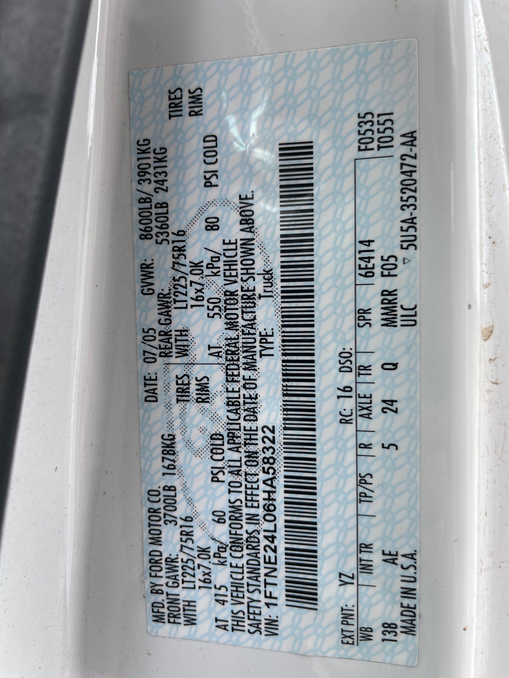 VIN | 1FTNE24L06HA58322 |
