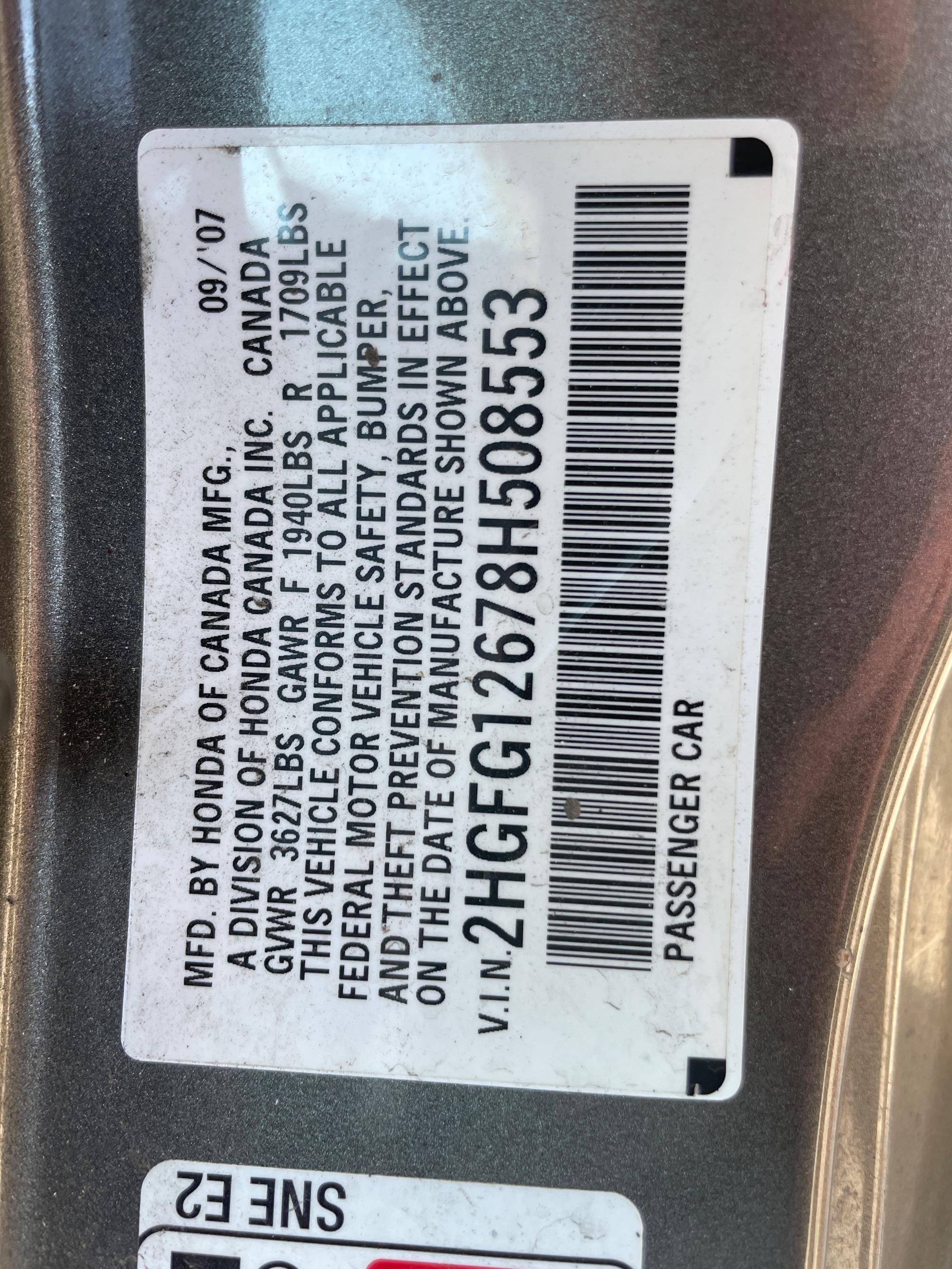 VIN | 2HGFG12678H508553 |