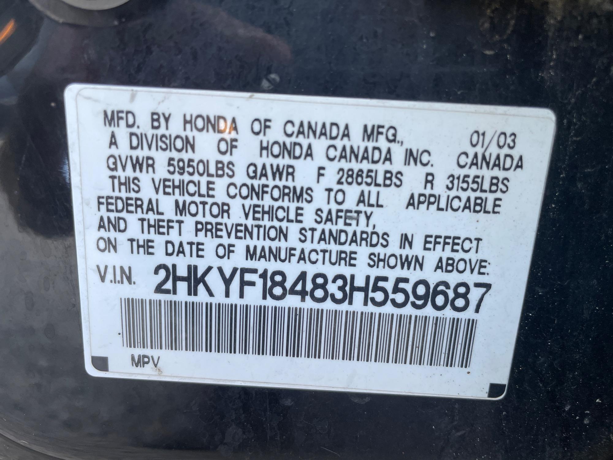 VIN | 2HKYF18483H559687 |