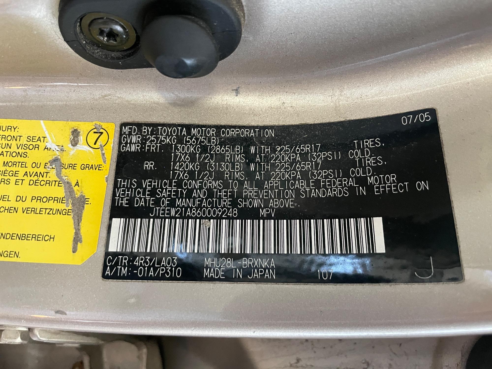 | VIN | JTEEW21A860009248 |
