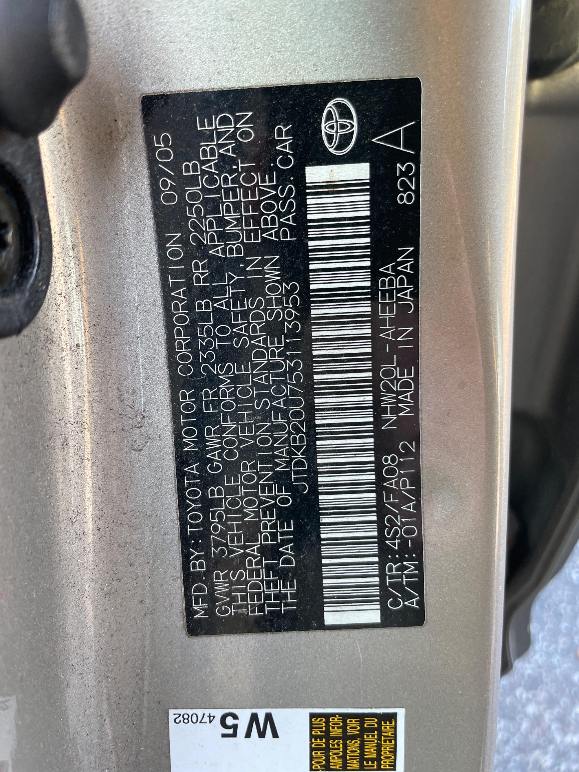 | VIN | JTDKB20U753113953 |
