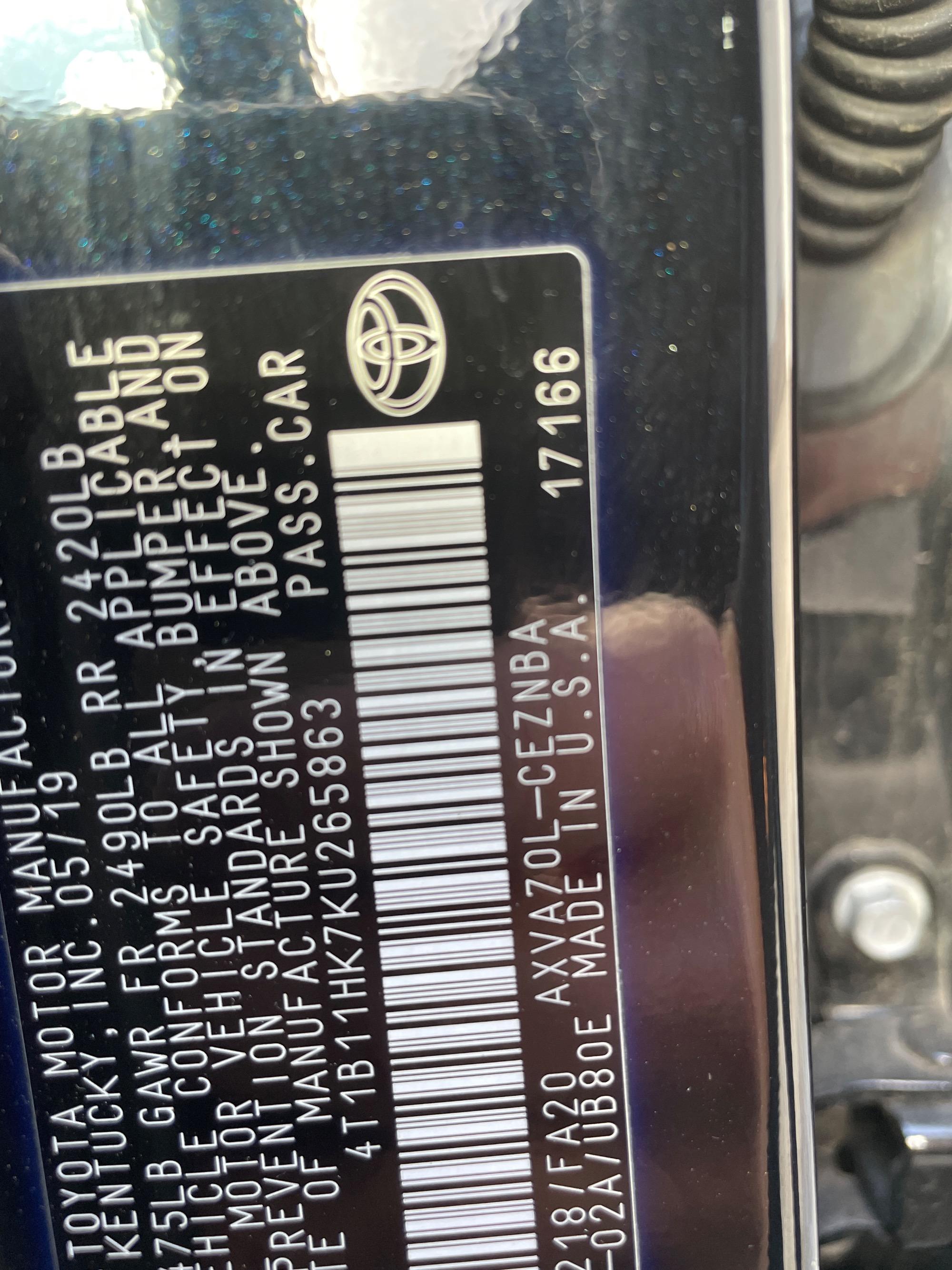 | VIN | 4T1B11HK7KU265863 |