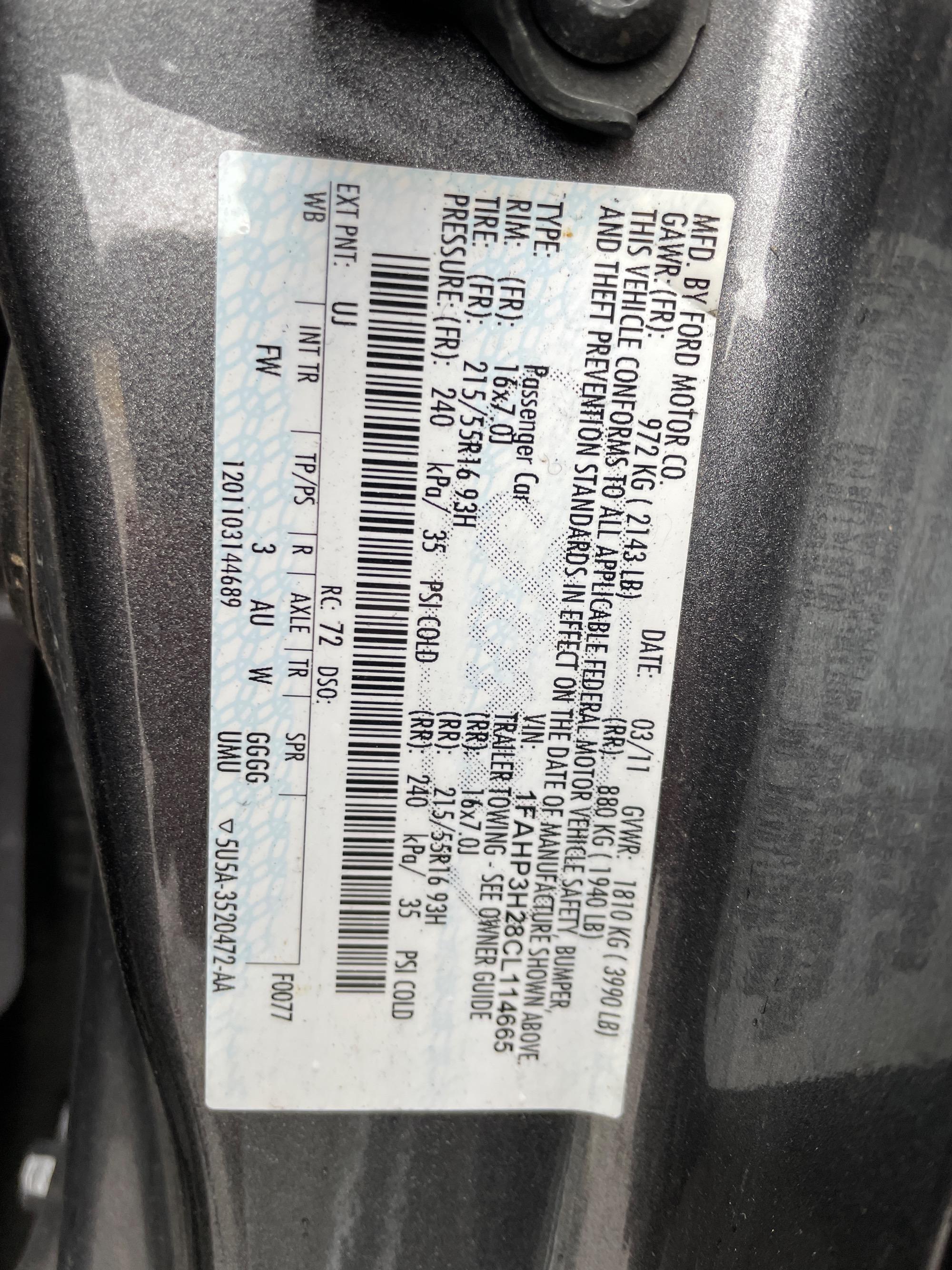 | VIN | 1FAHP3H28CL114665 |