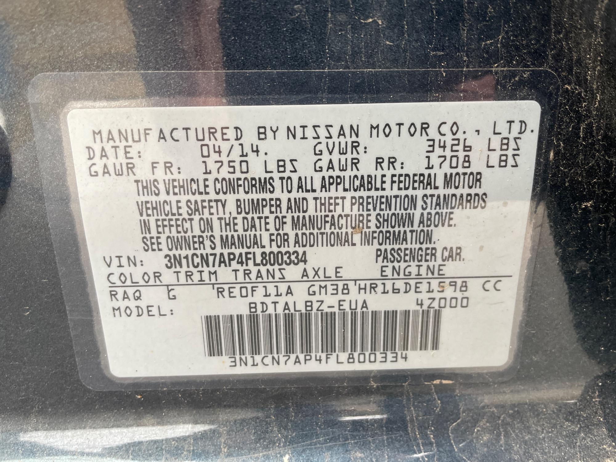 | VIN | 3N1CN7AP4FL800334 |