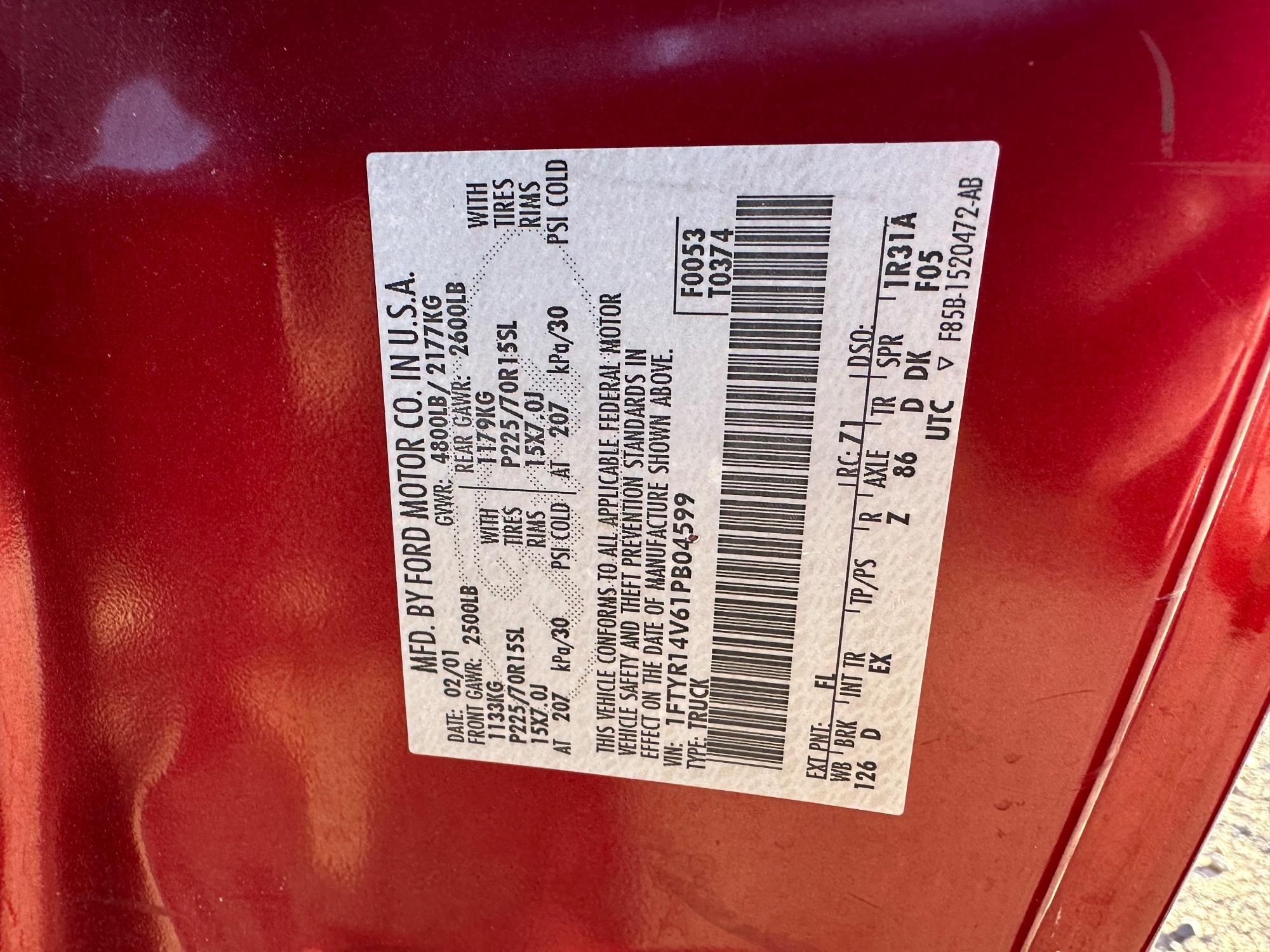 | VIN | 1FTYR14V61PB04599 |