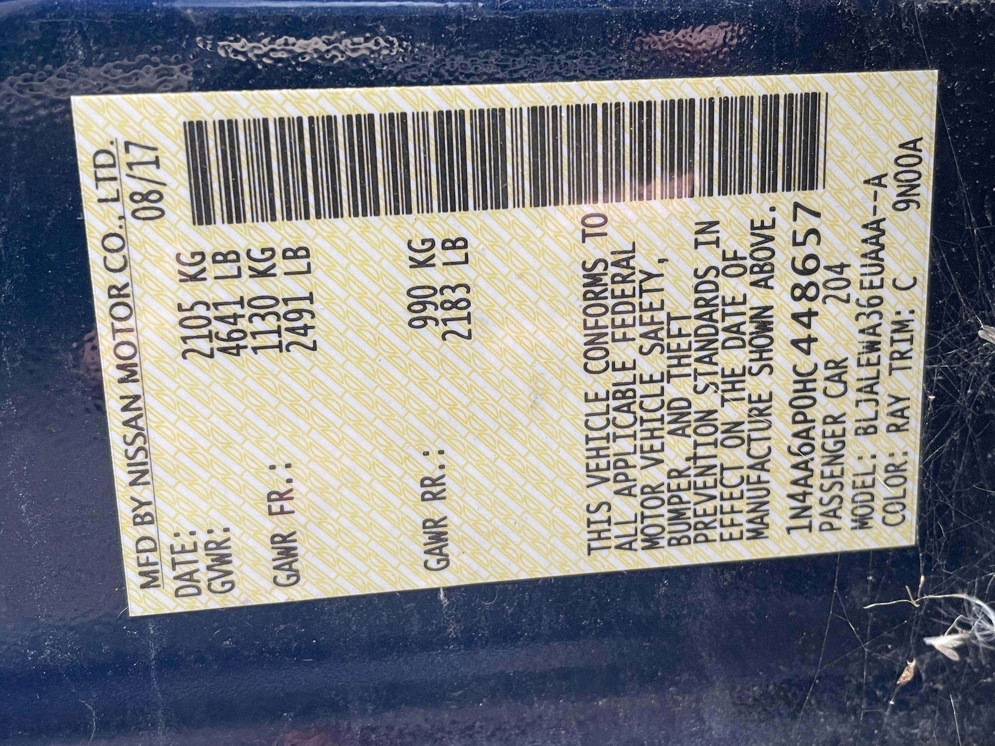 | VIN | 1N4AA6AP0HC448657 |