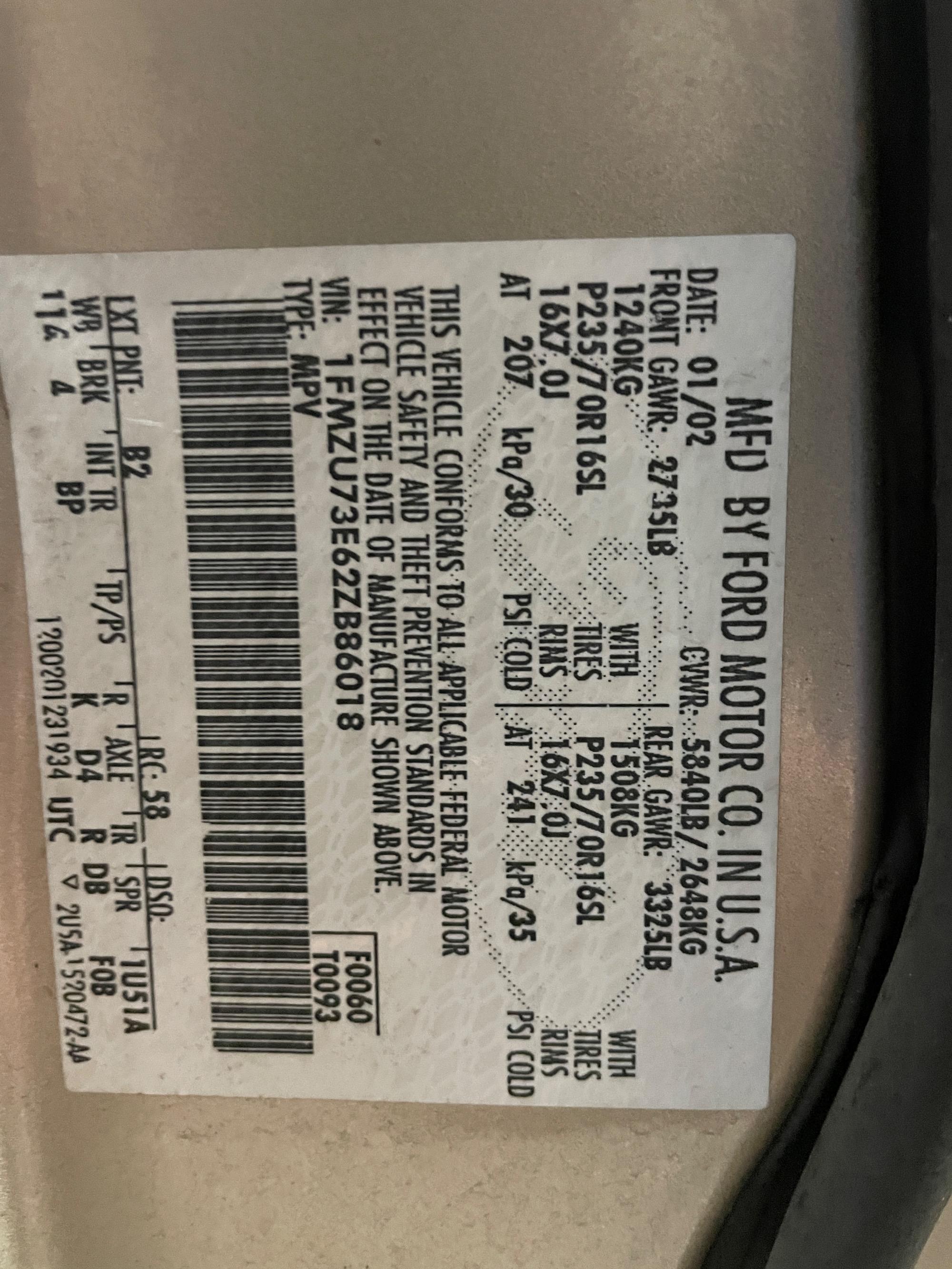 | VIN | 1FMZU73E62ZB86018 |
