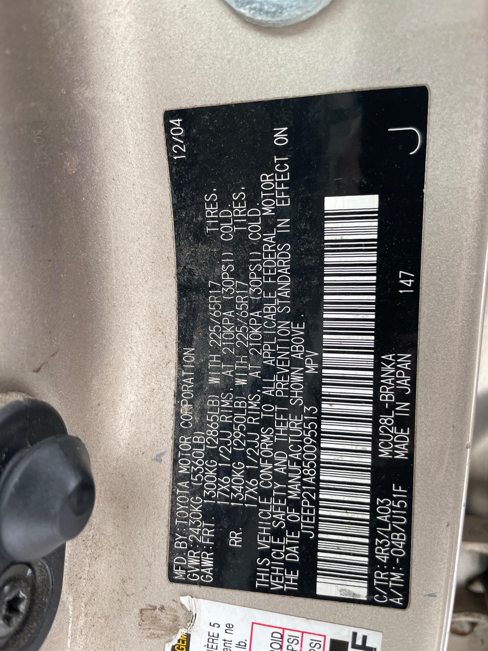 | VIN | JTEEP21A850095513 |