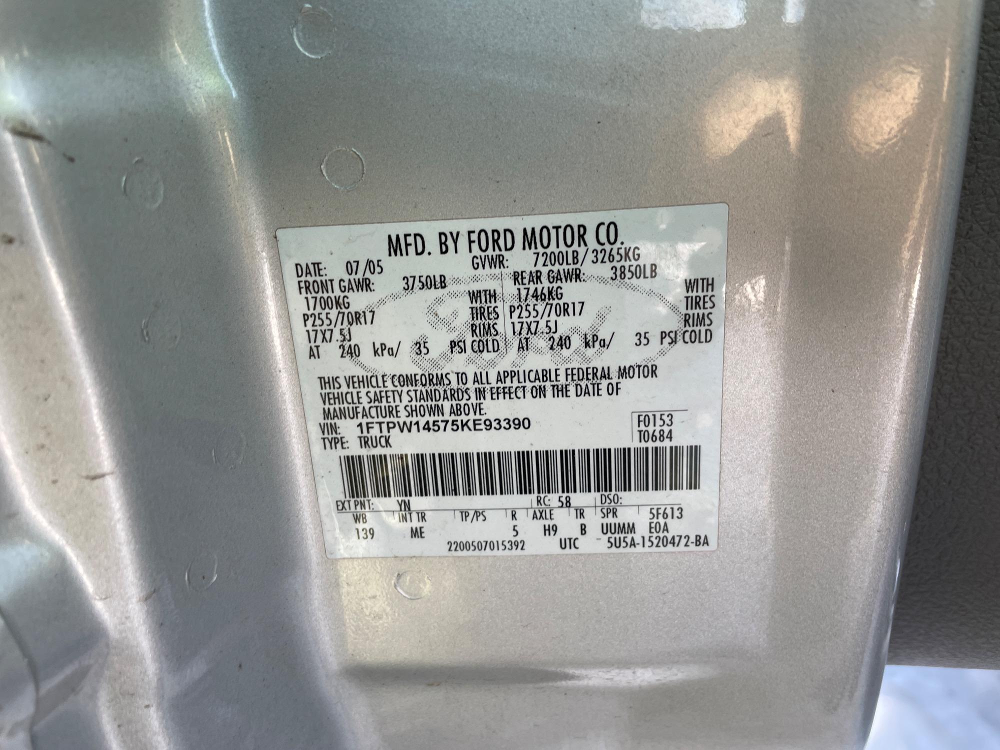 | VIN | 1FTPW14575KE93390 |