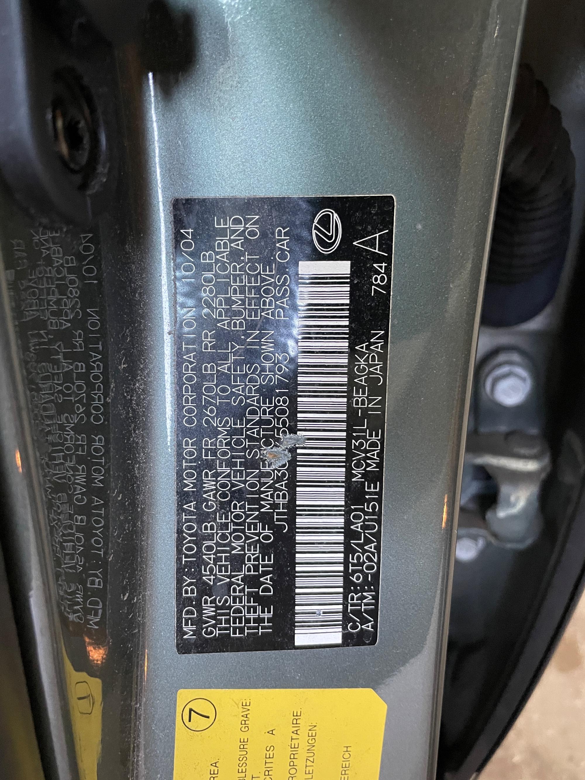 | VIN | JTHBA30G655081793 |