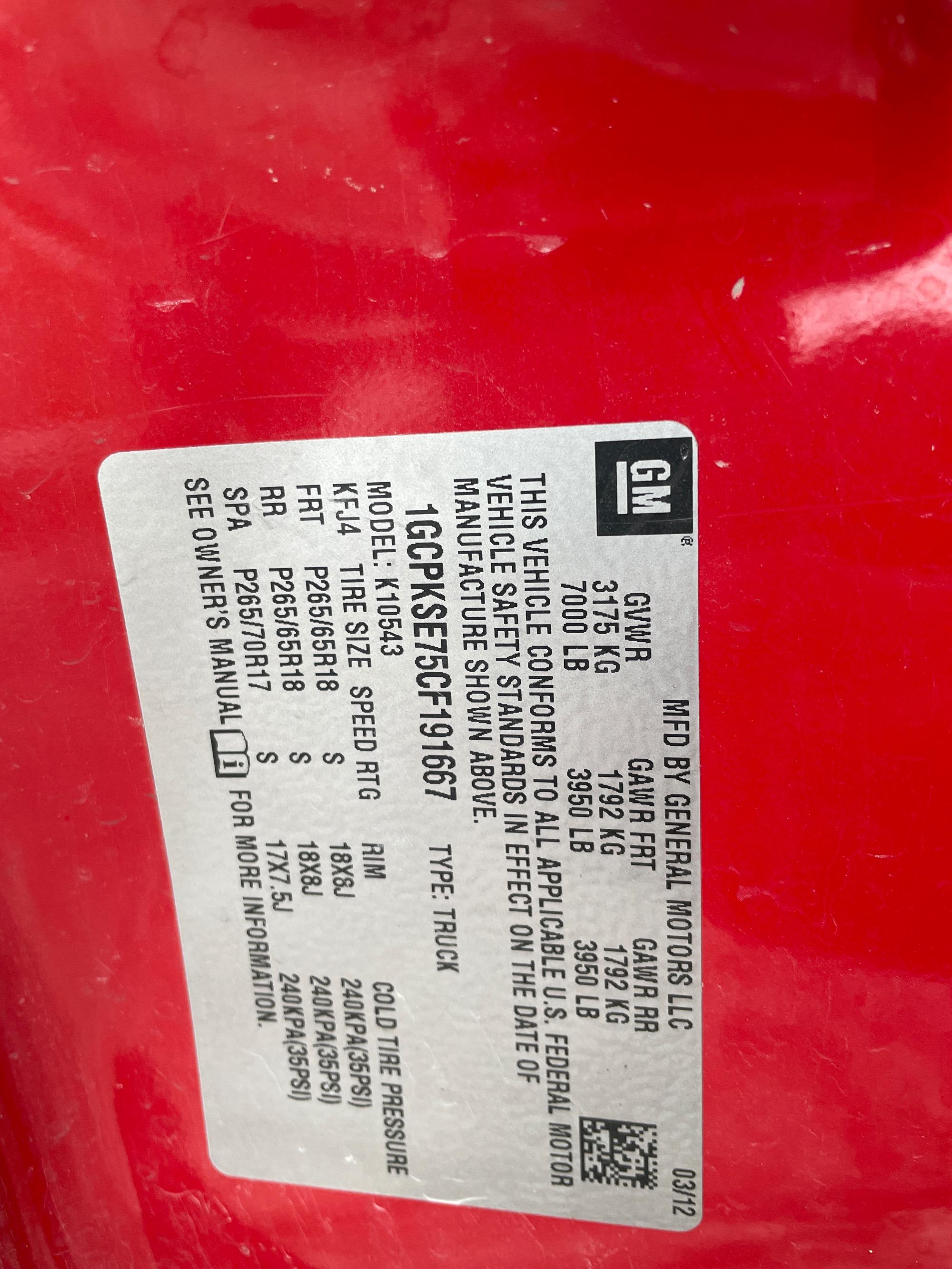 | VIN | 1GCPKSE75CF191667 |