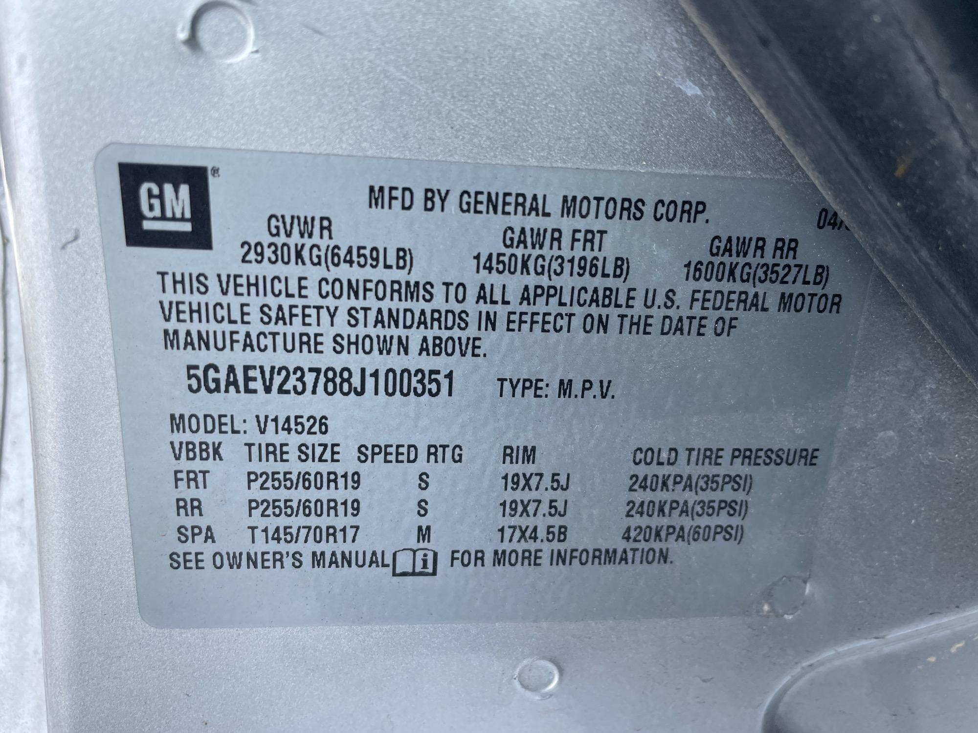 | VIN | 5GAEV23788J100351 |