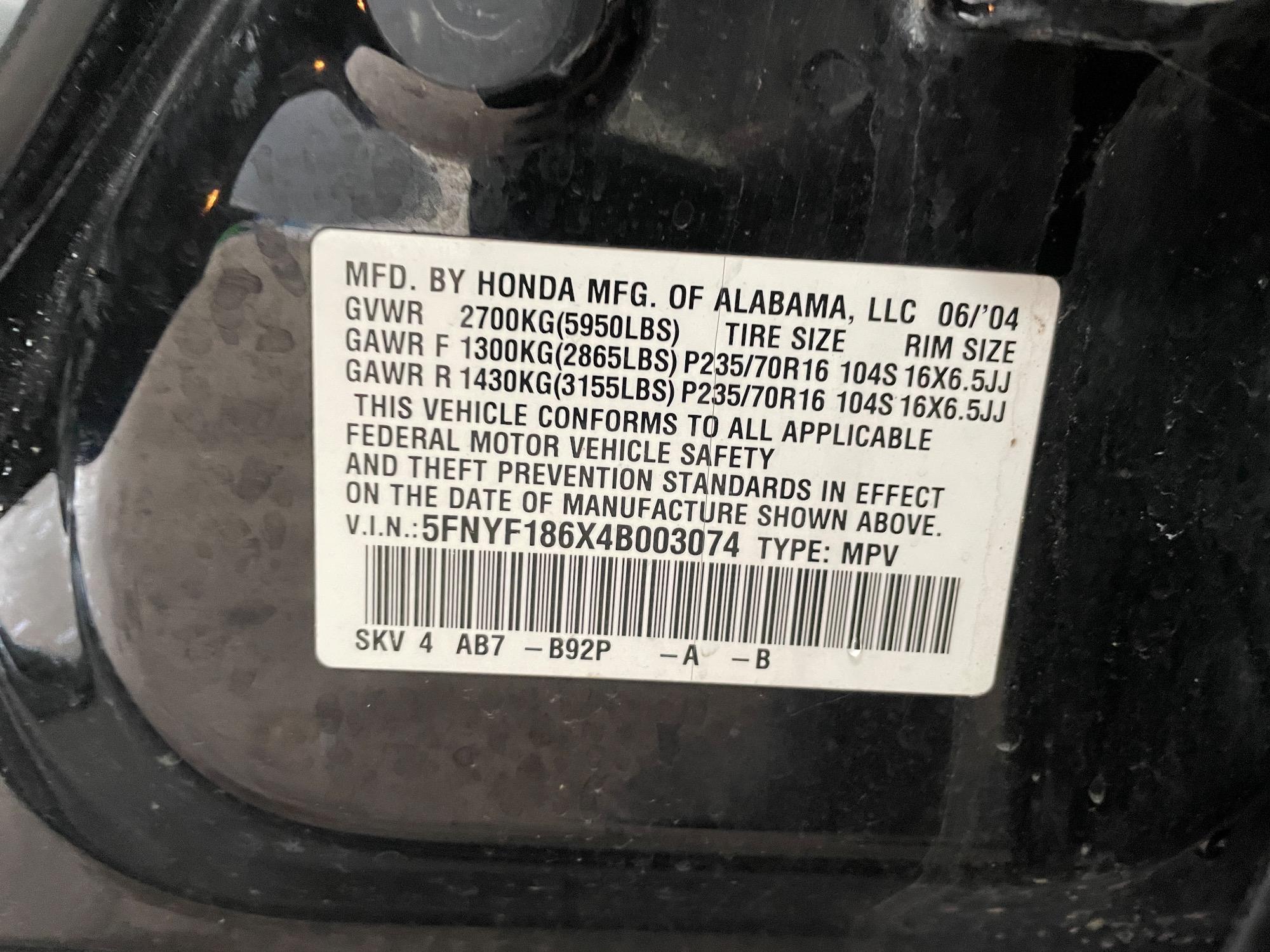 | VIN | 5FNYF186X4B003074 |