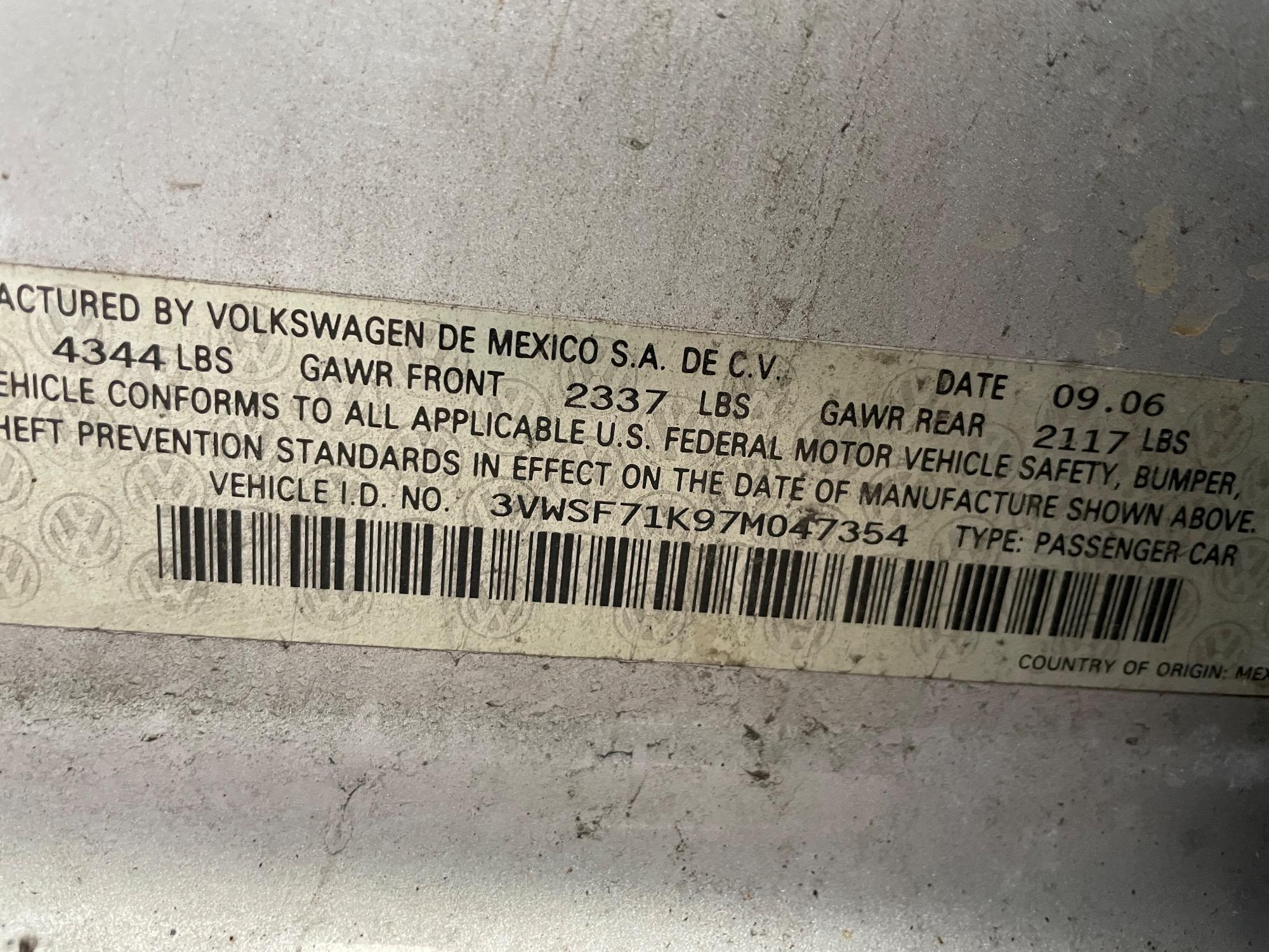 | VIN | 3VWSF71K97M047354 |