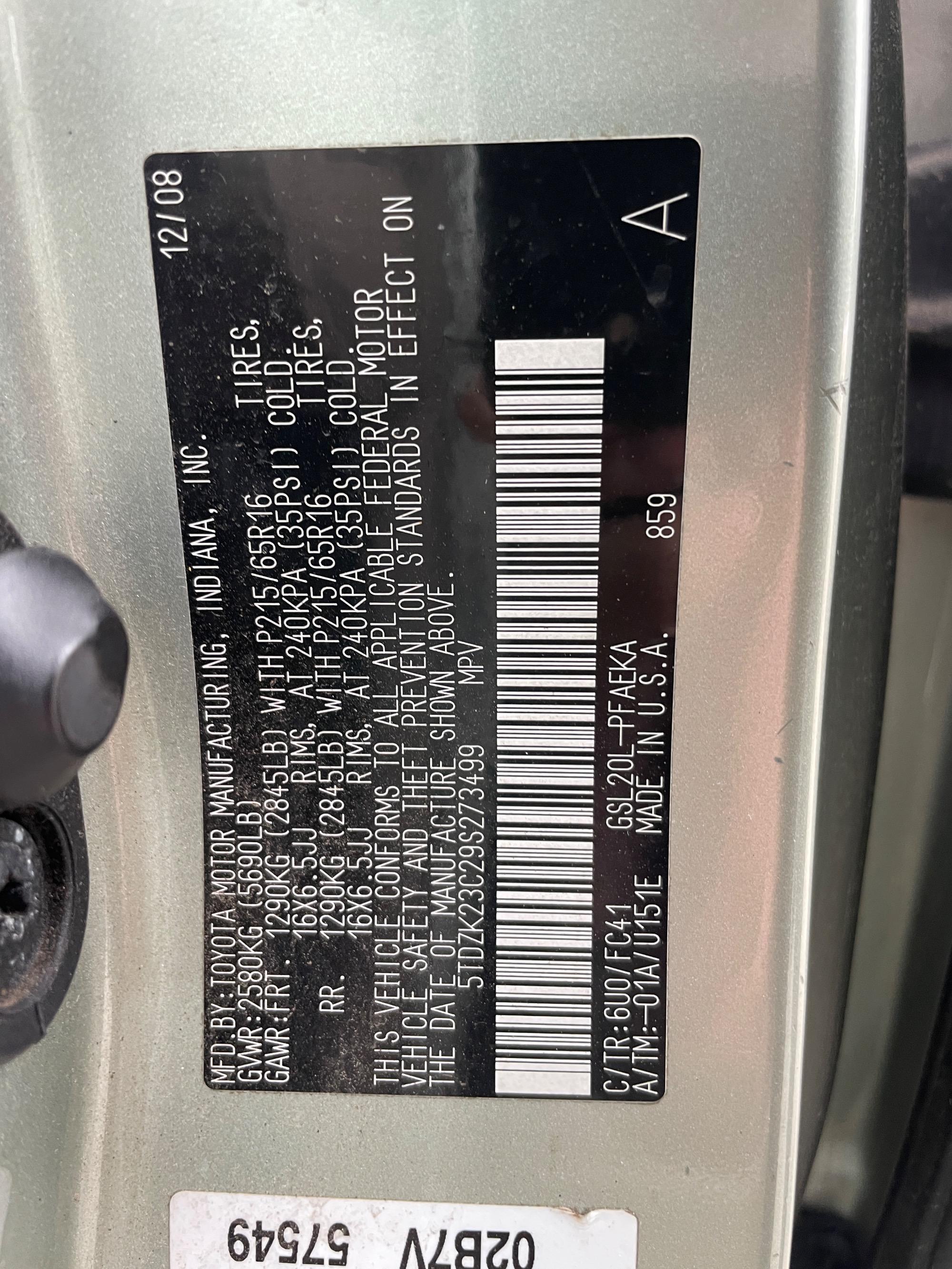 | VIN | 5TDZK23C29S273499 |