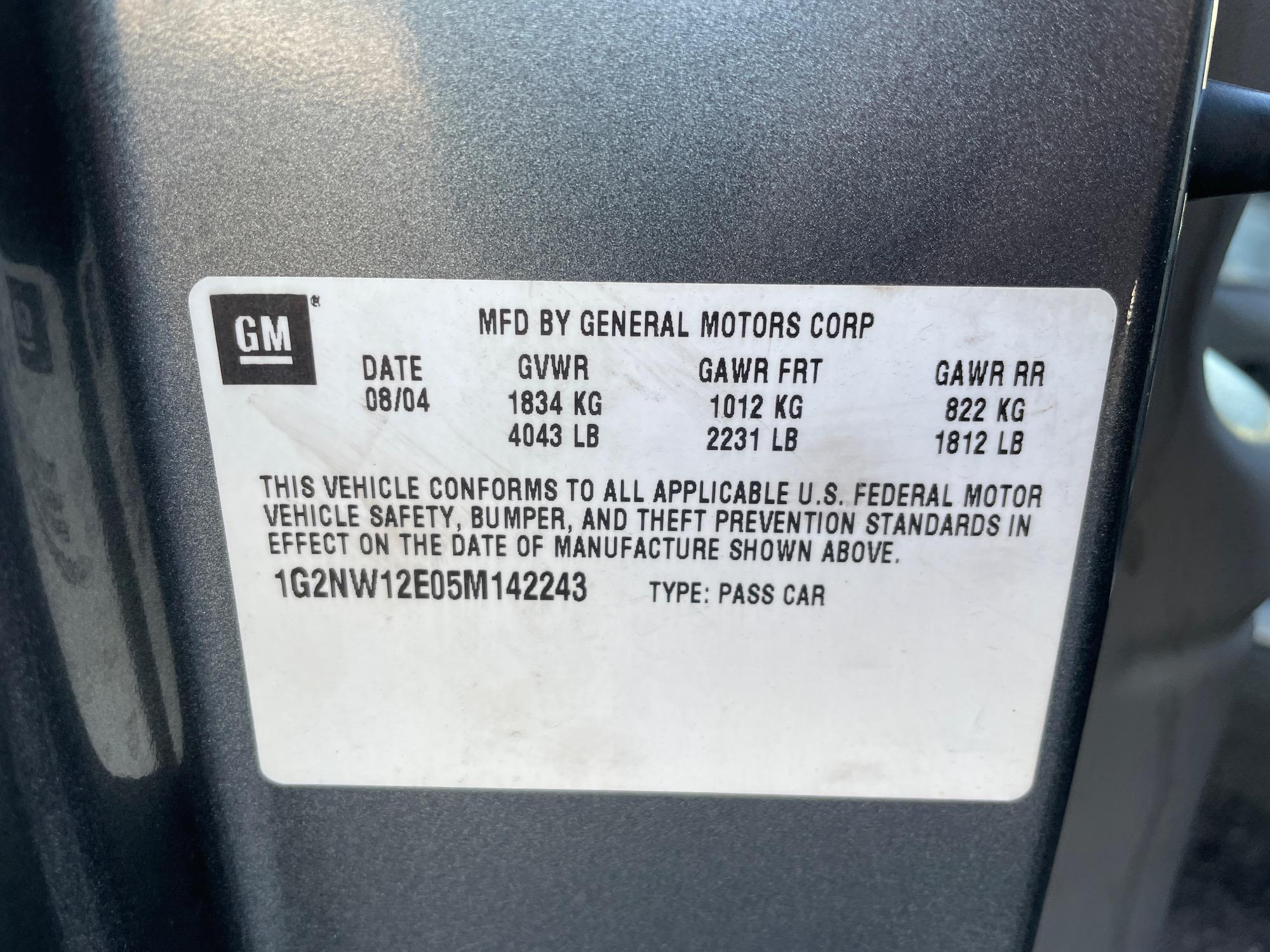 | VIN | 1G2NW12E05M142243 |