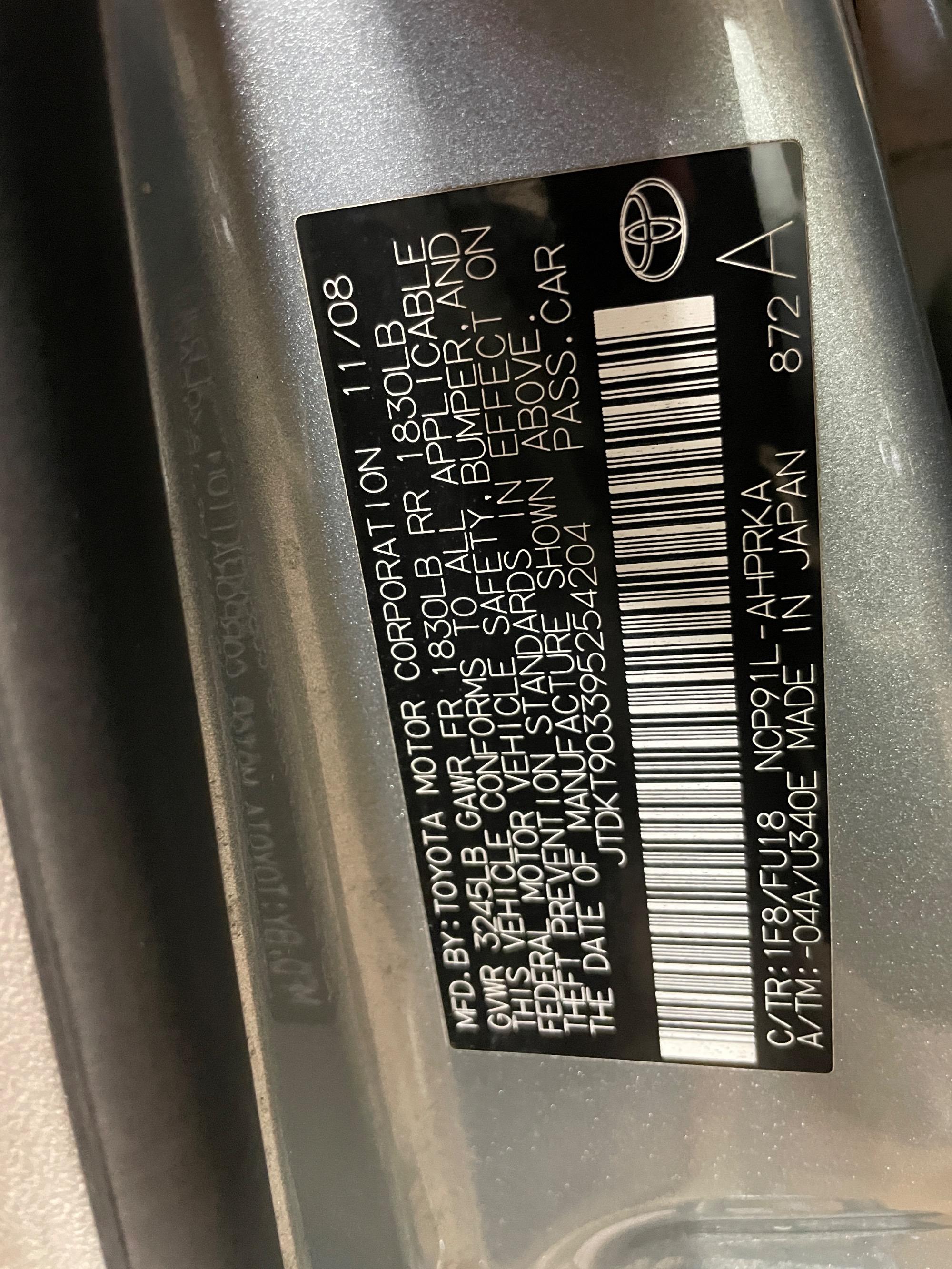 | VIN | JTDKT903395254204 |