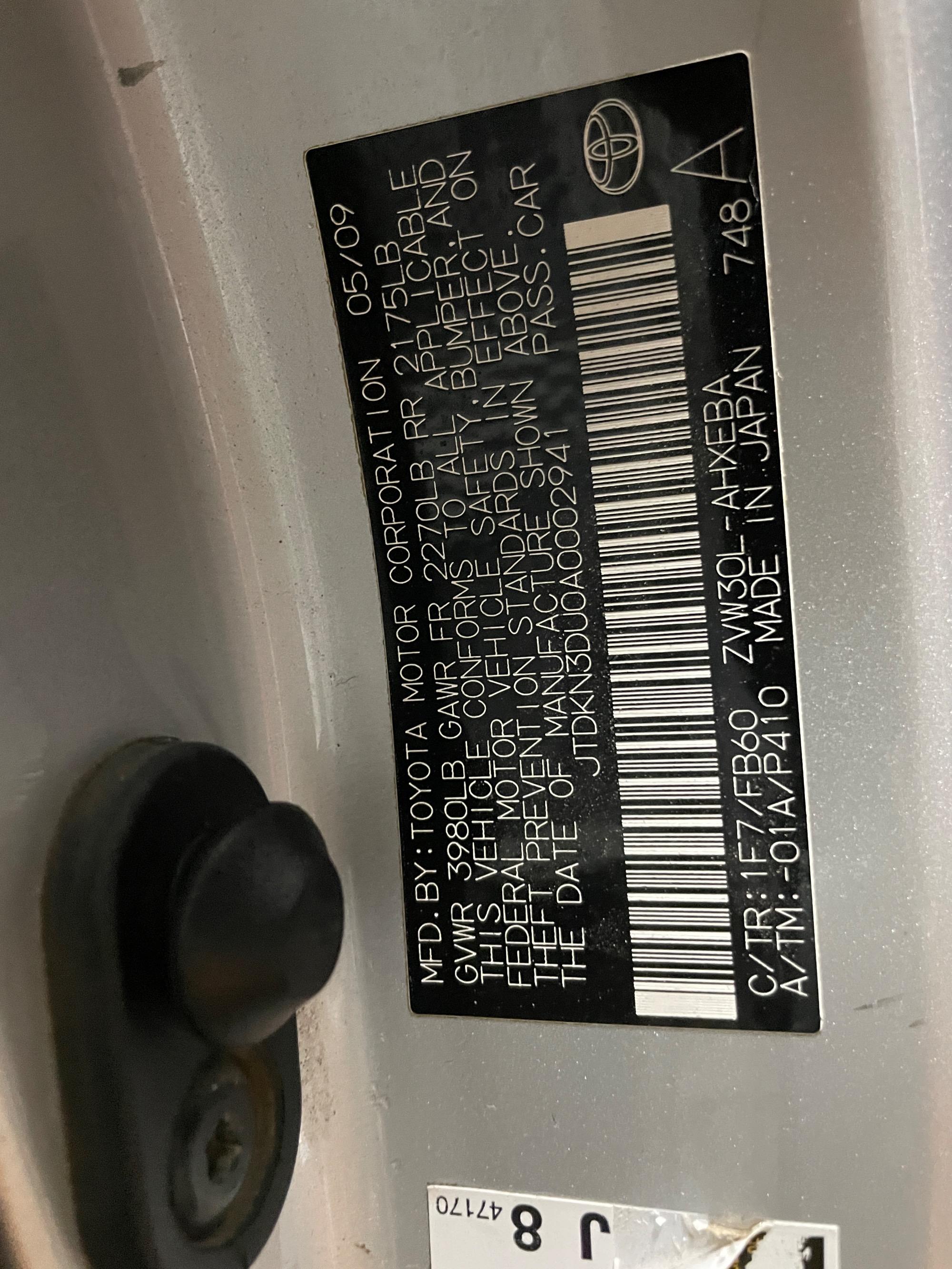 | VIN | JTDKN3DU0A0002941 |