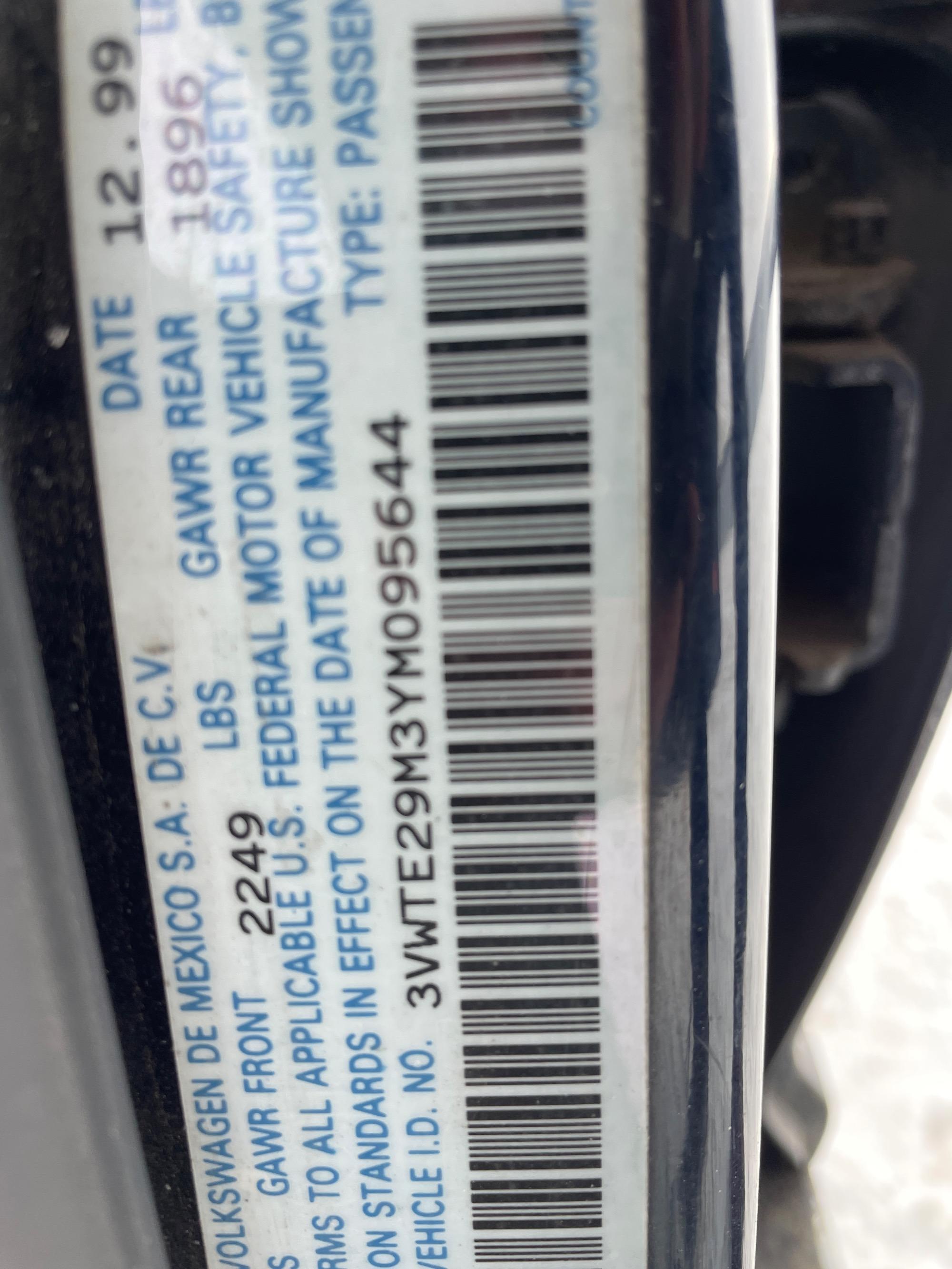 | VIN | 3VWTE29M3YM095644 |