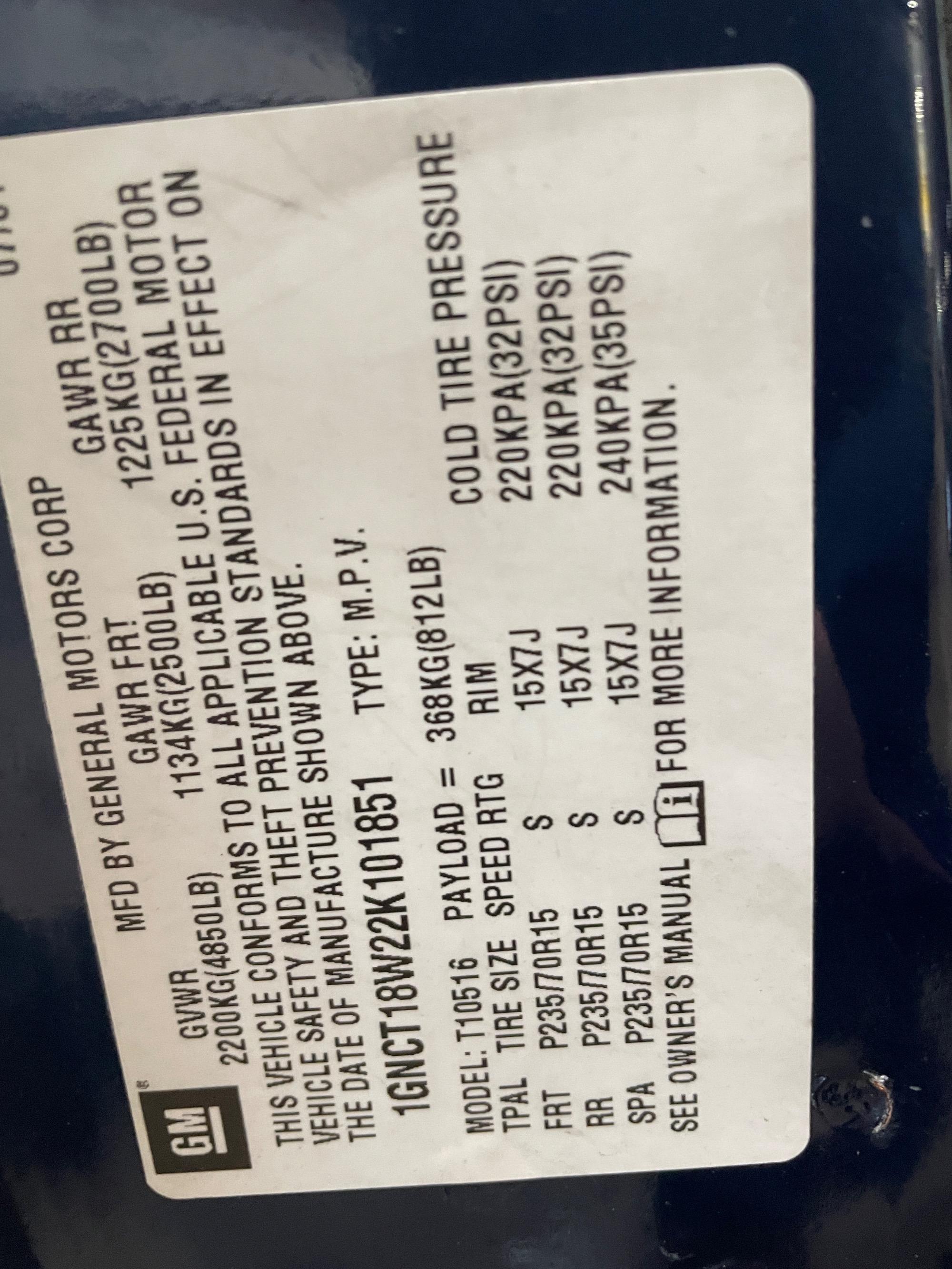 | VIN | 1GNCT18W22K101851 |