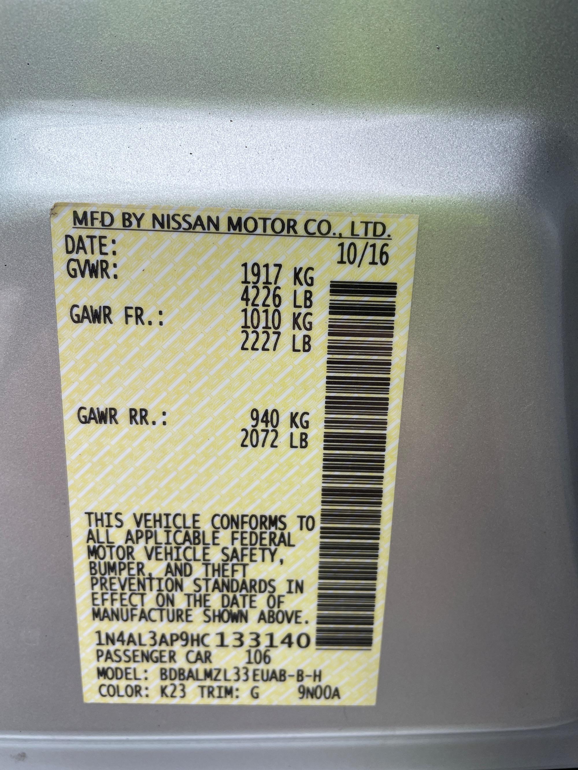 | VIN | 1N4AL3AP9HC133140 |