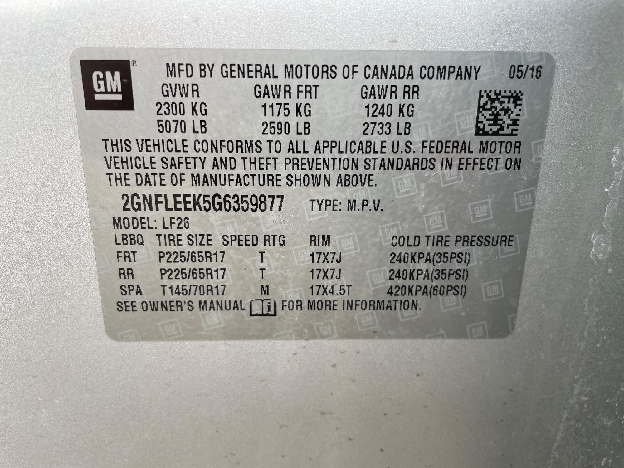 | VIN | 2GNFLEEK5G6359877 |