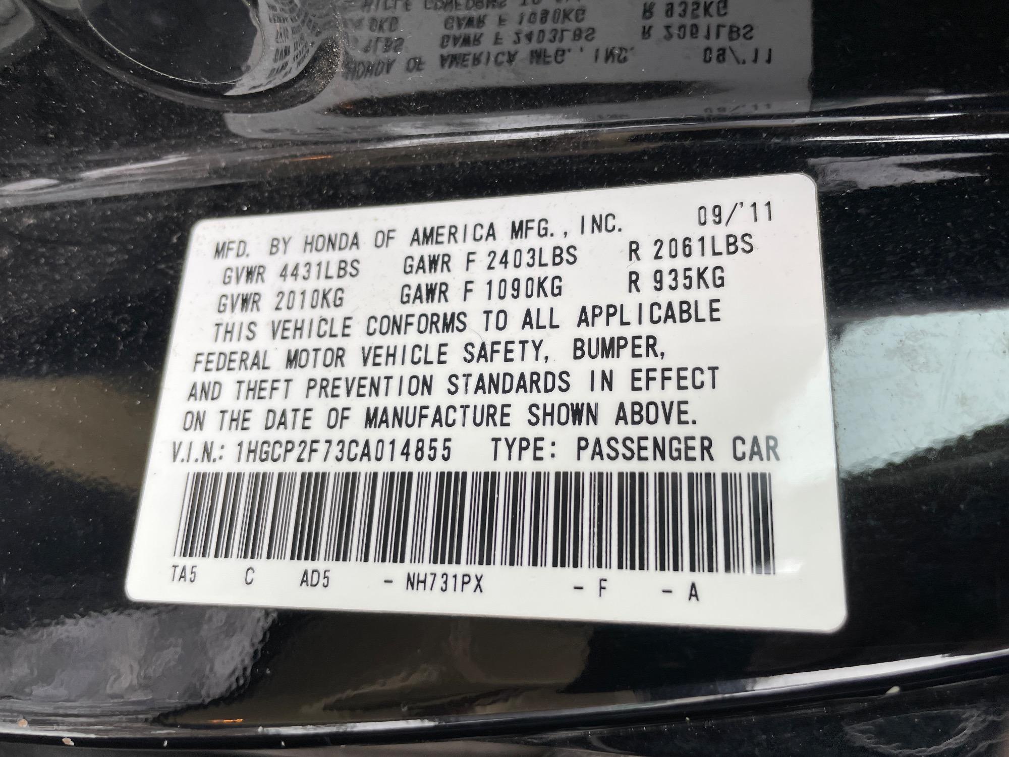 | VIN | 1HGCP2F73CA014855 |