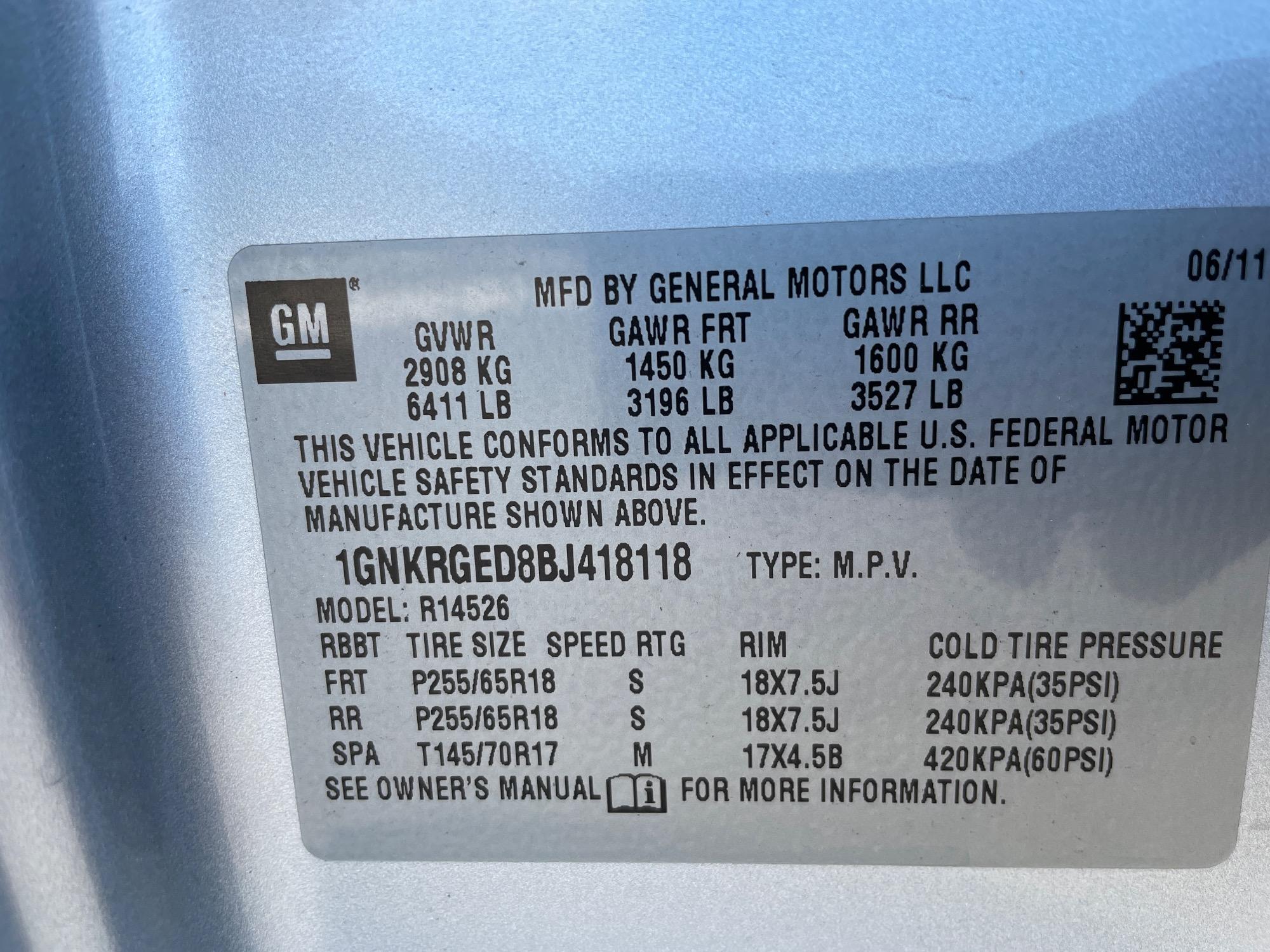 | VIN | 1GNKRGED8BJ418118 |
