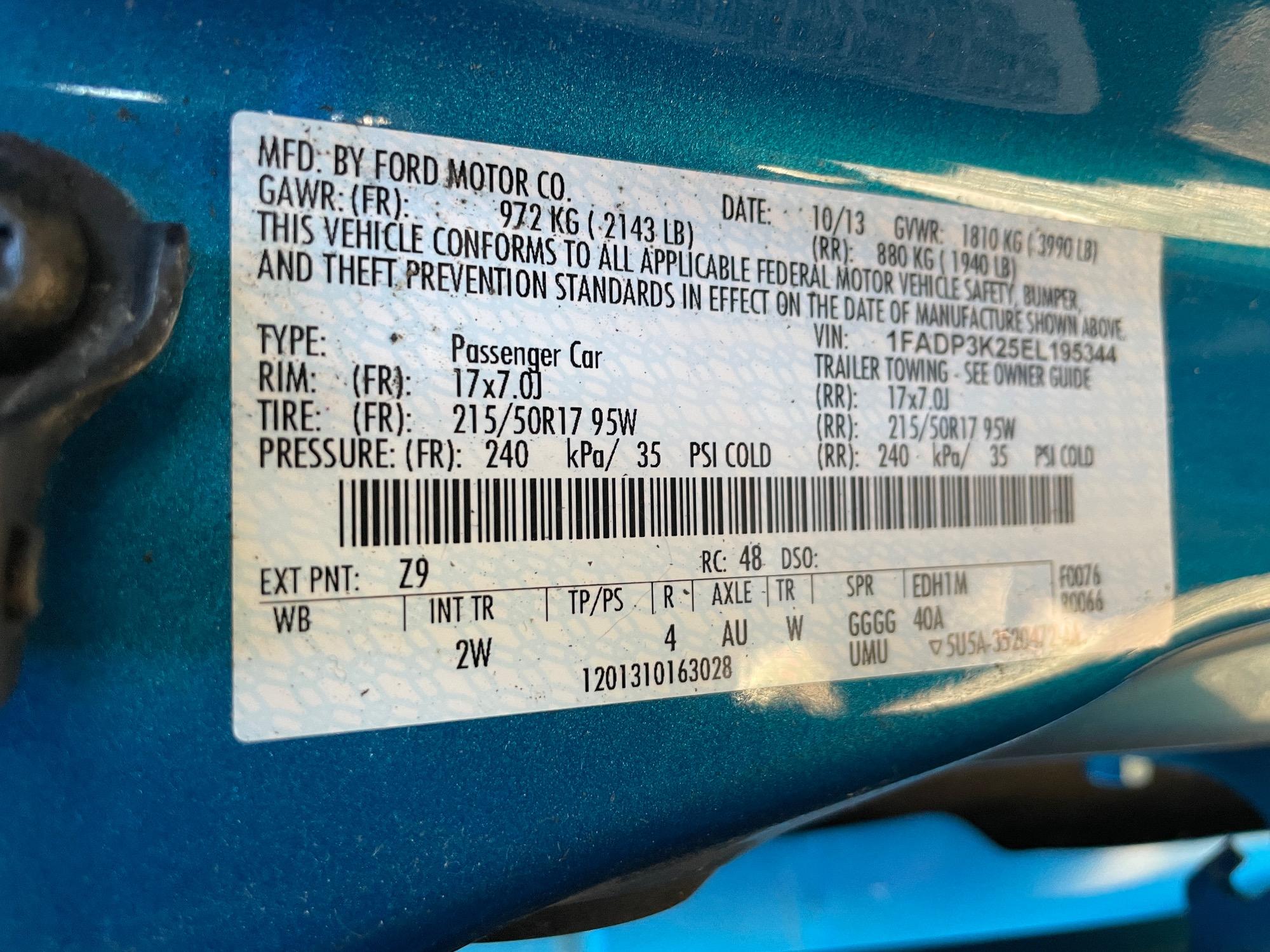 | VIN | 1FADP3K25EL195344 |
