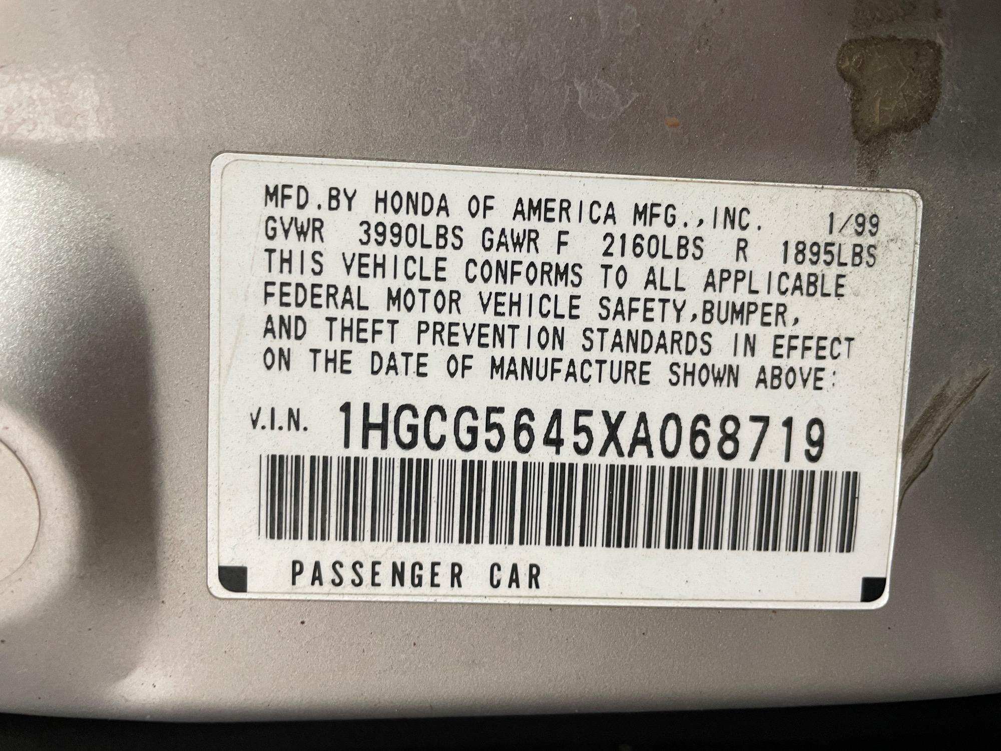 | VIN | 1HGCG5645XA068719 |