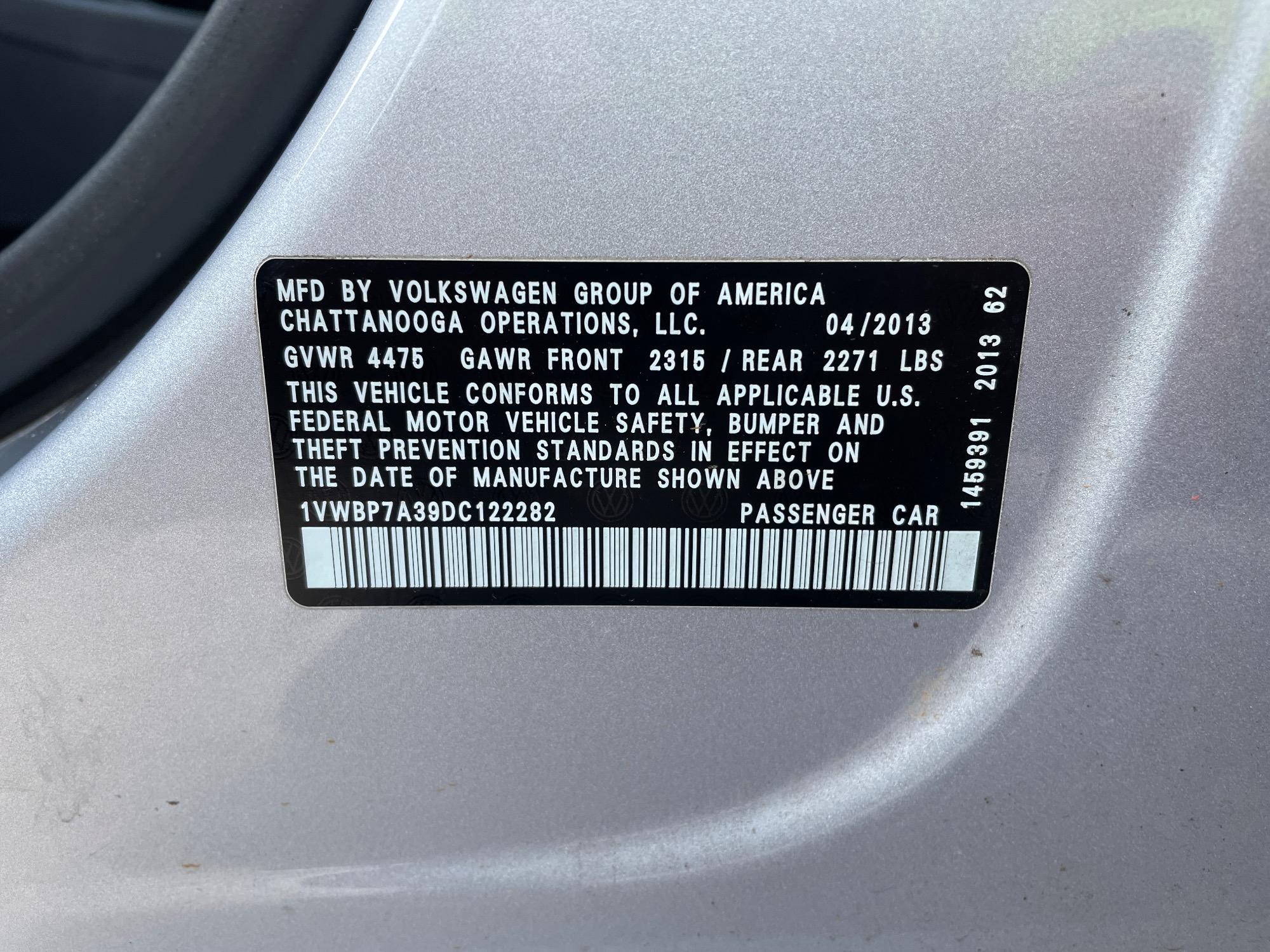 | VIN | 1VWBP7A39DC122282 |