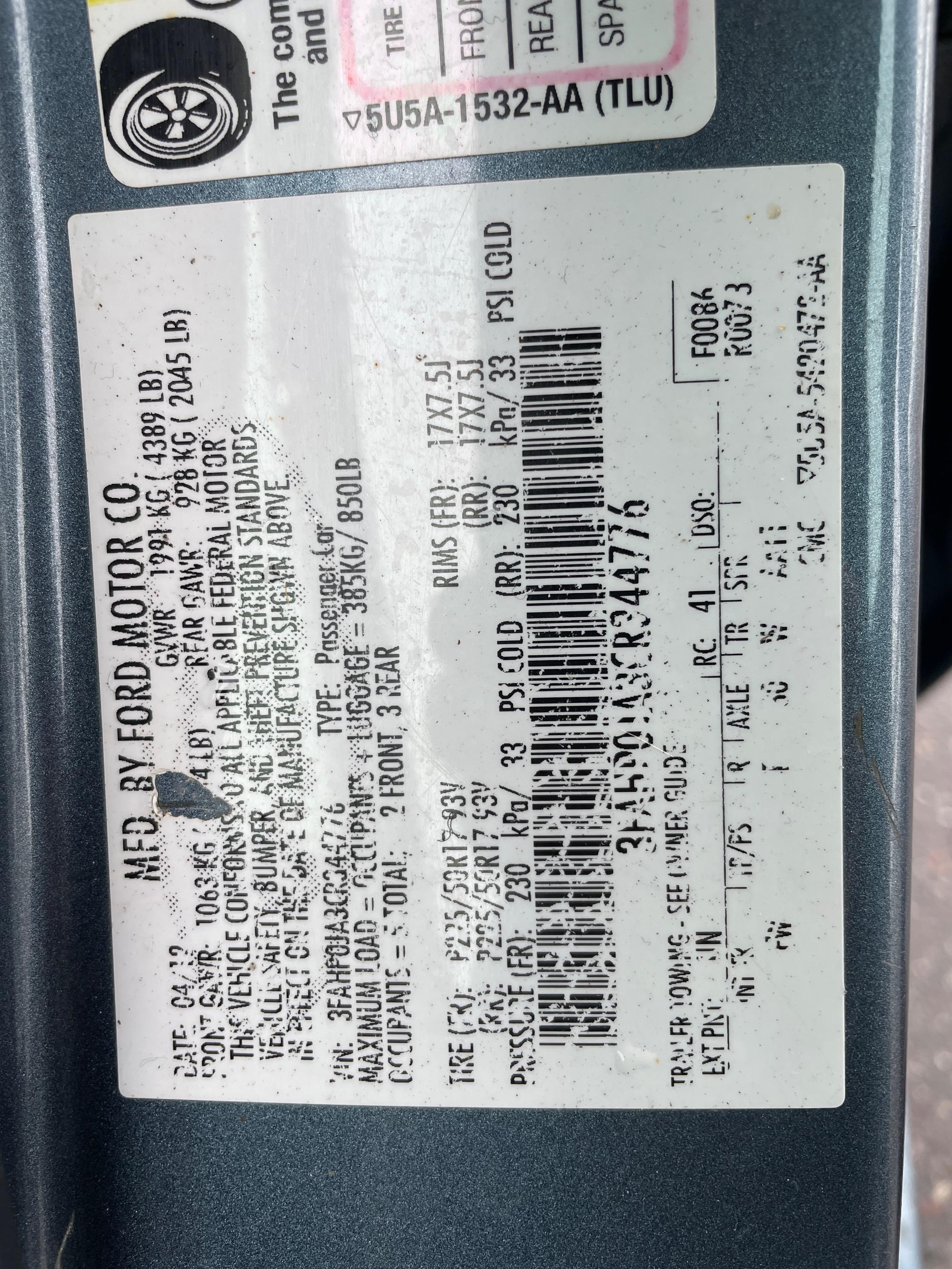 | VIN | 3FAHP0JA3CR344776 |