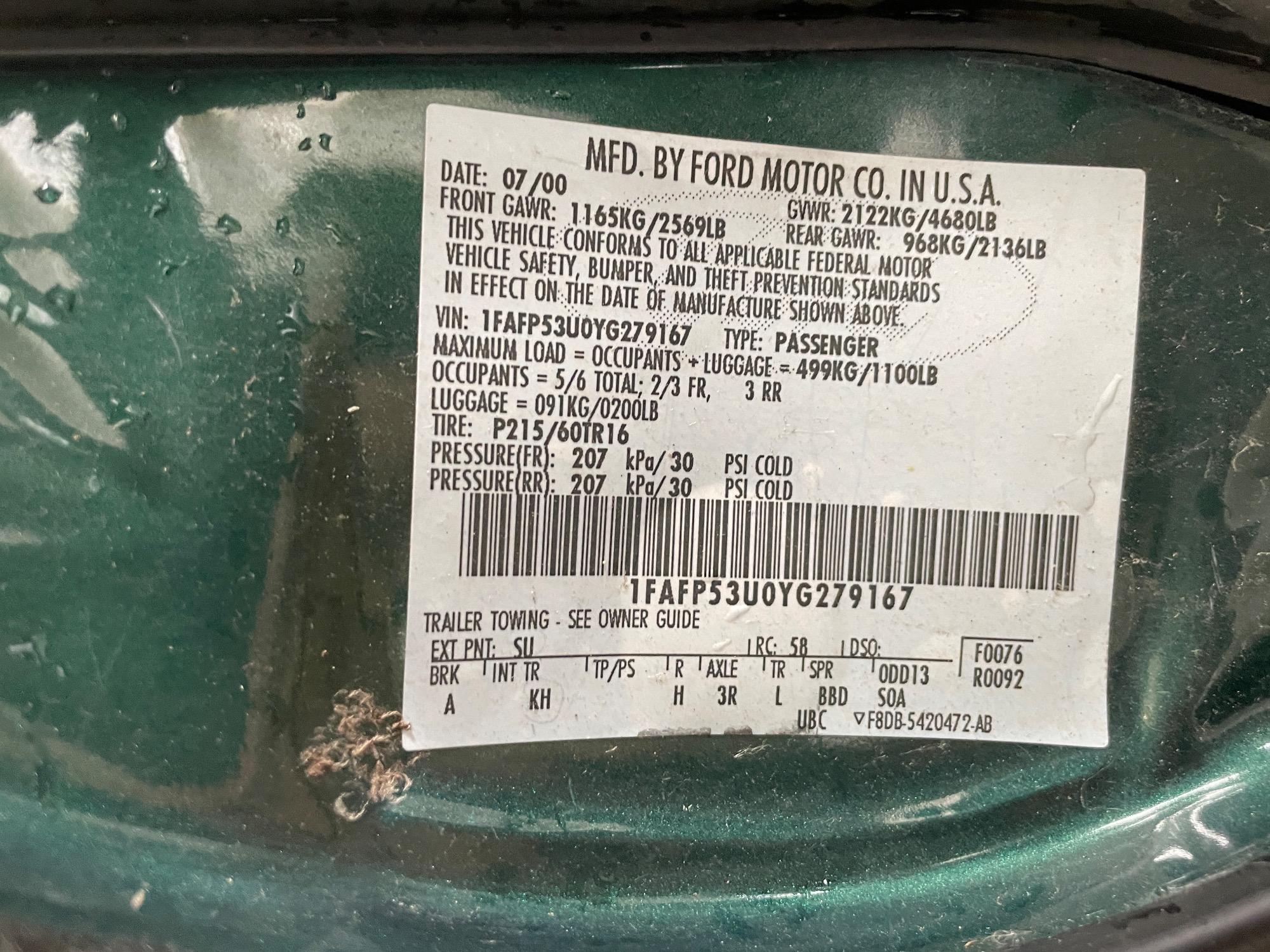| VIN | 1FAFP53U0YG279167 |