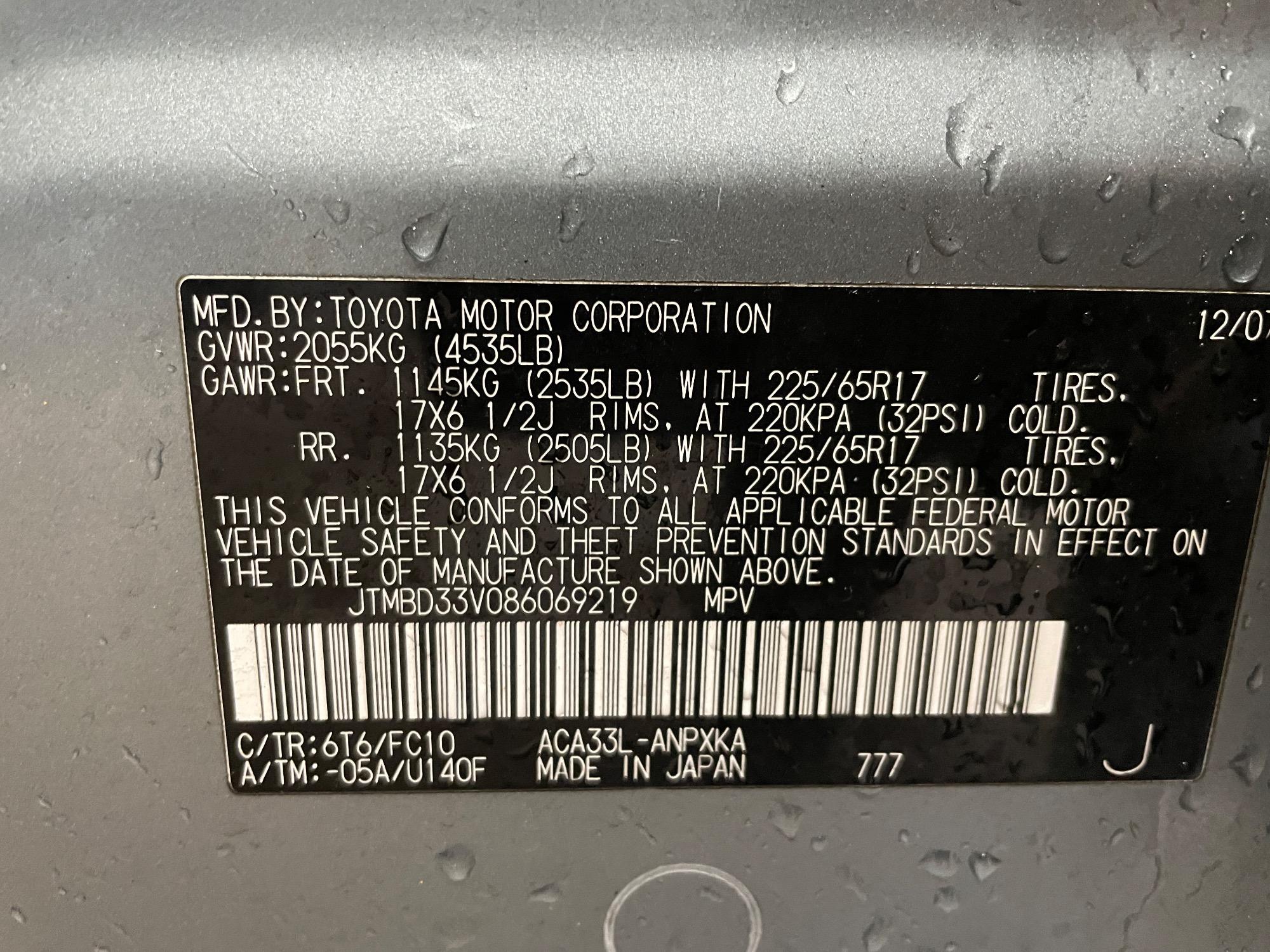 | VIN | JTMBD33V086069219 |