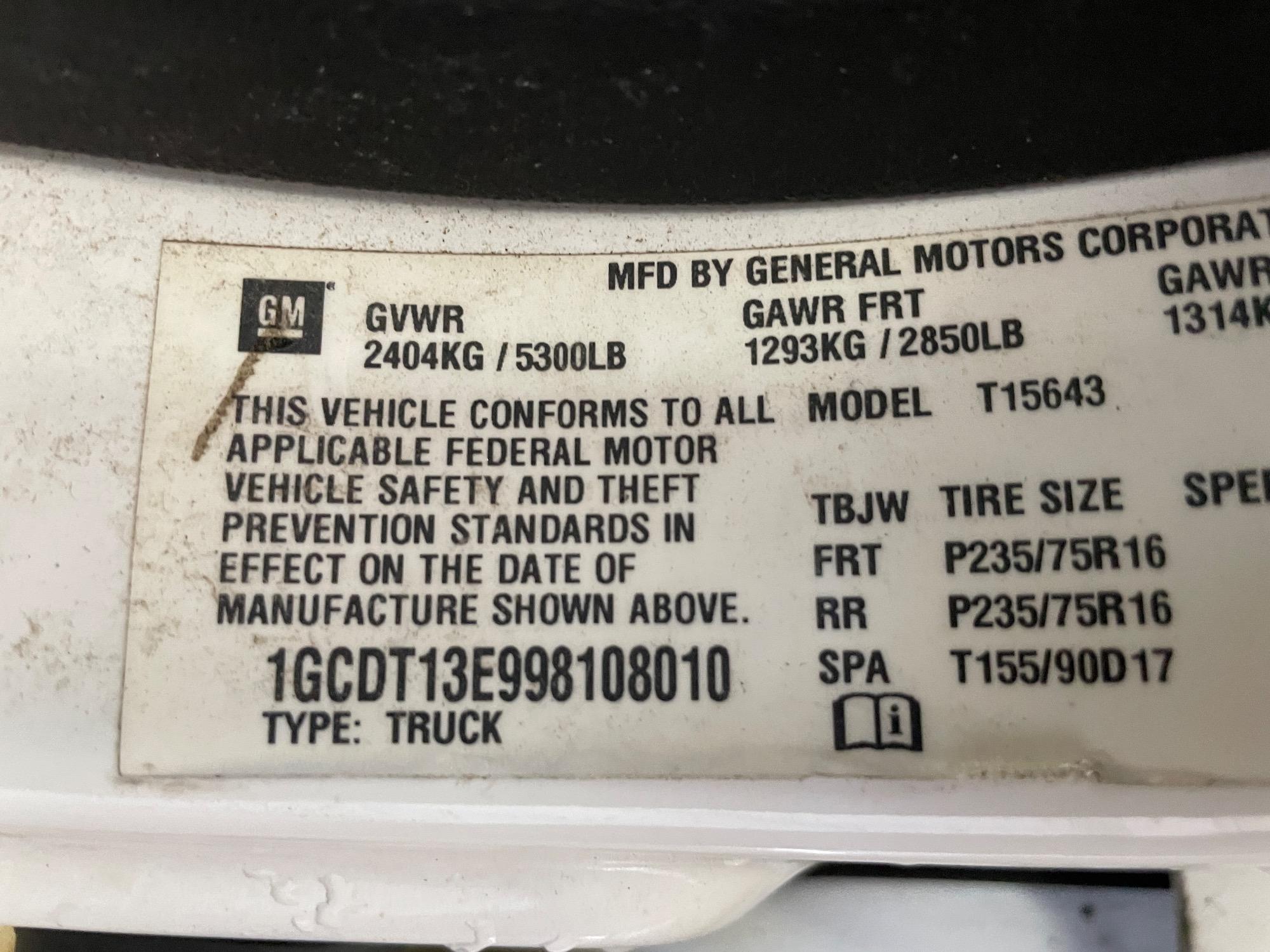 | VIN | 1GCDT13E998108010 |