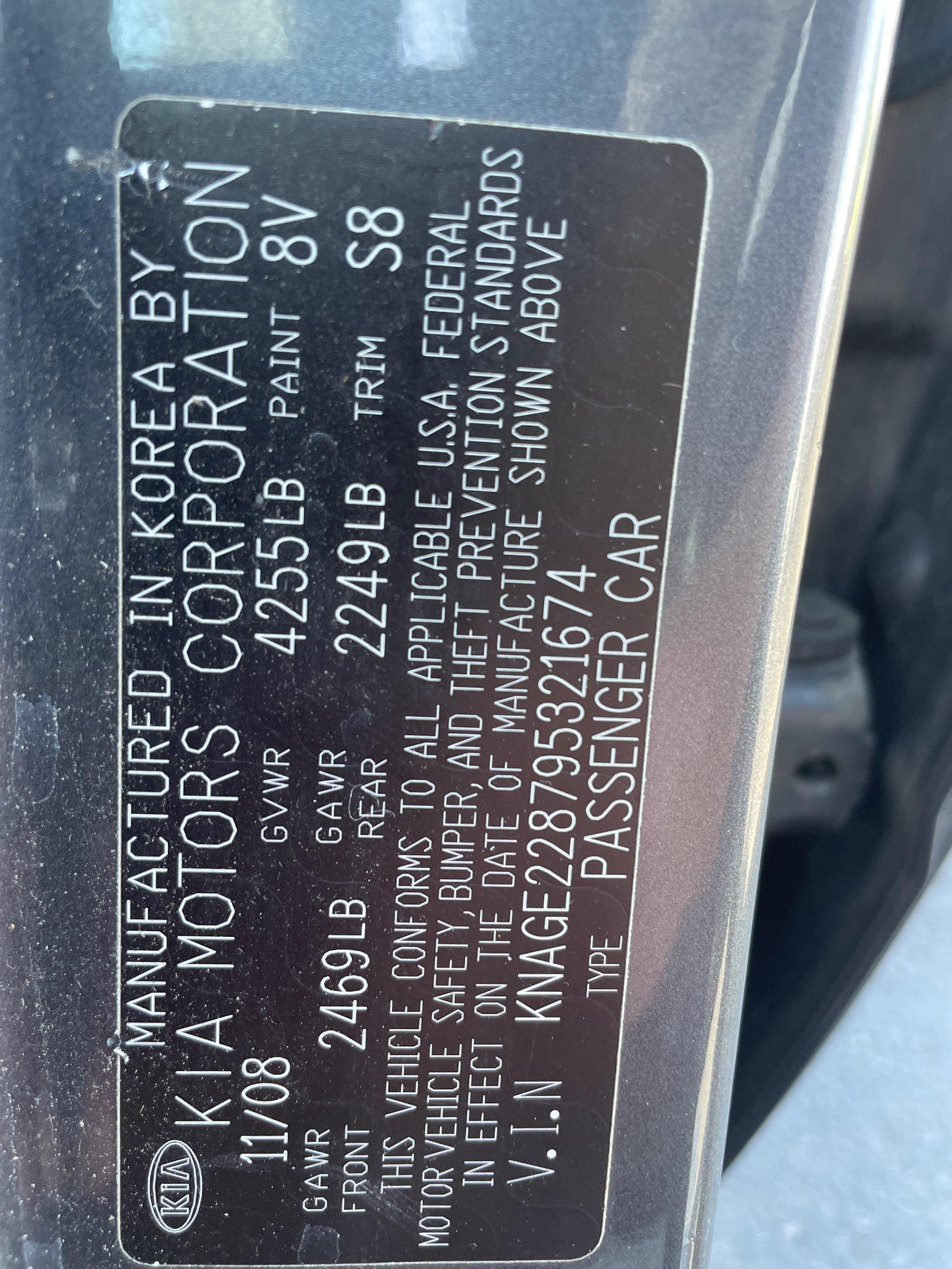 | VIN | KNAGE228795321674 |