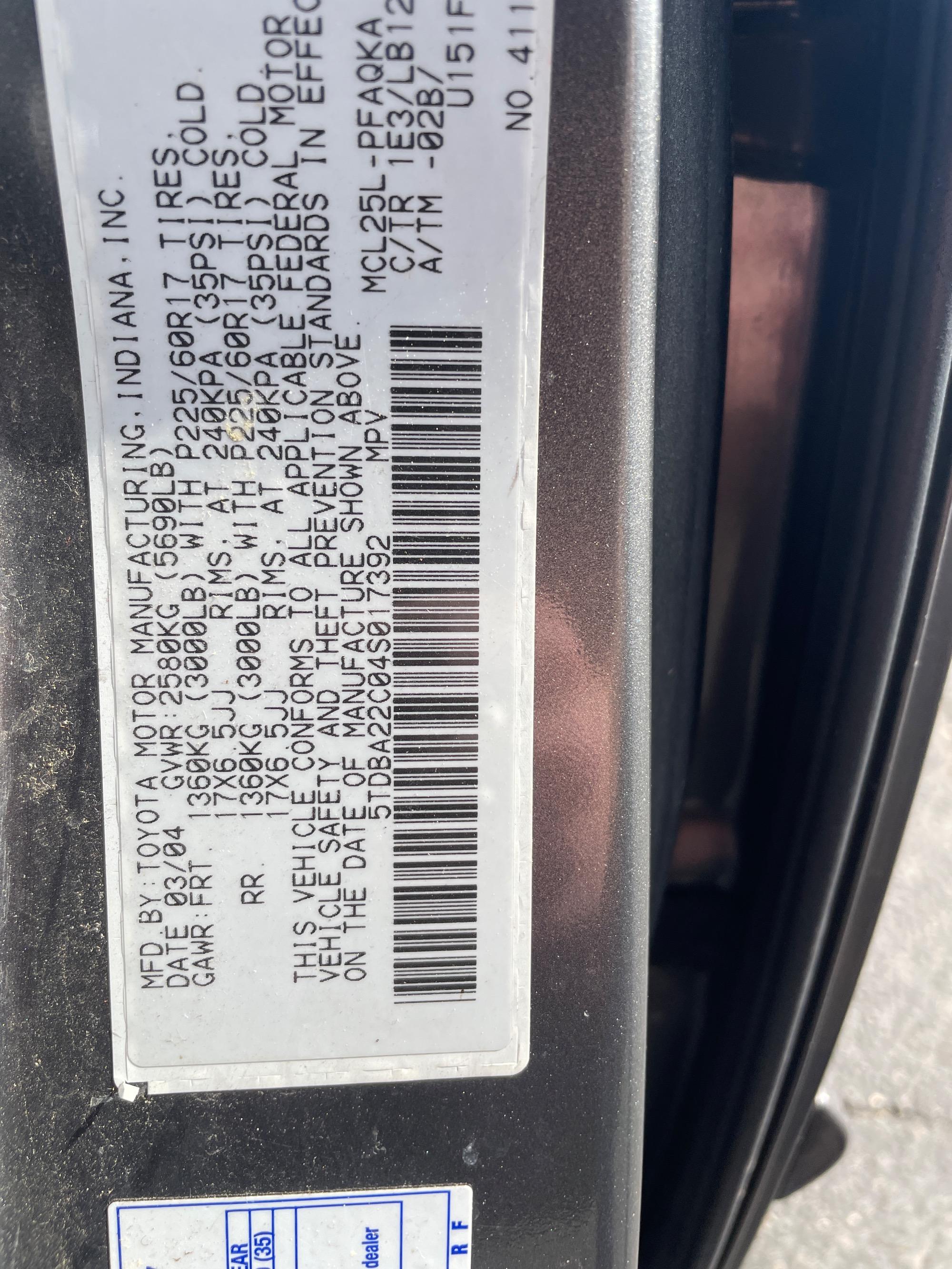 | VIN | 5TDBA22C04S017392 |