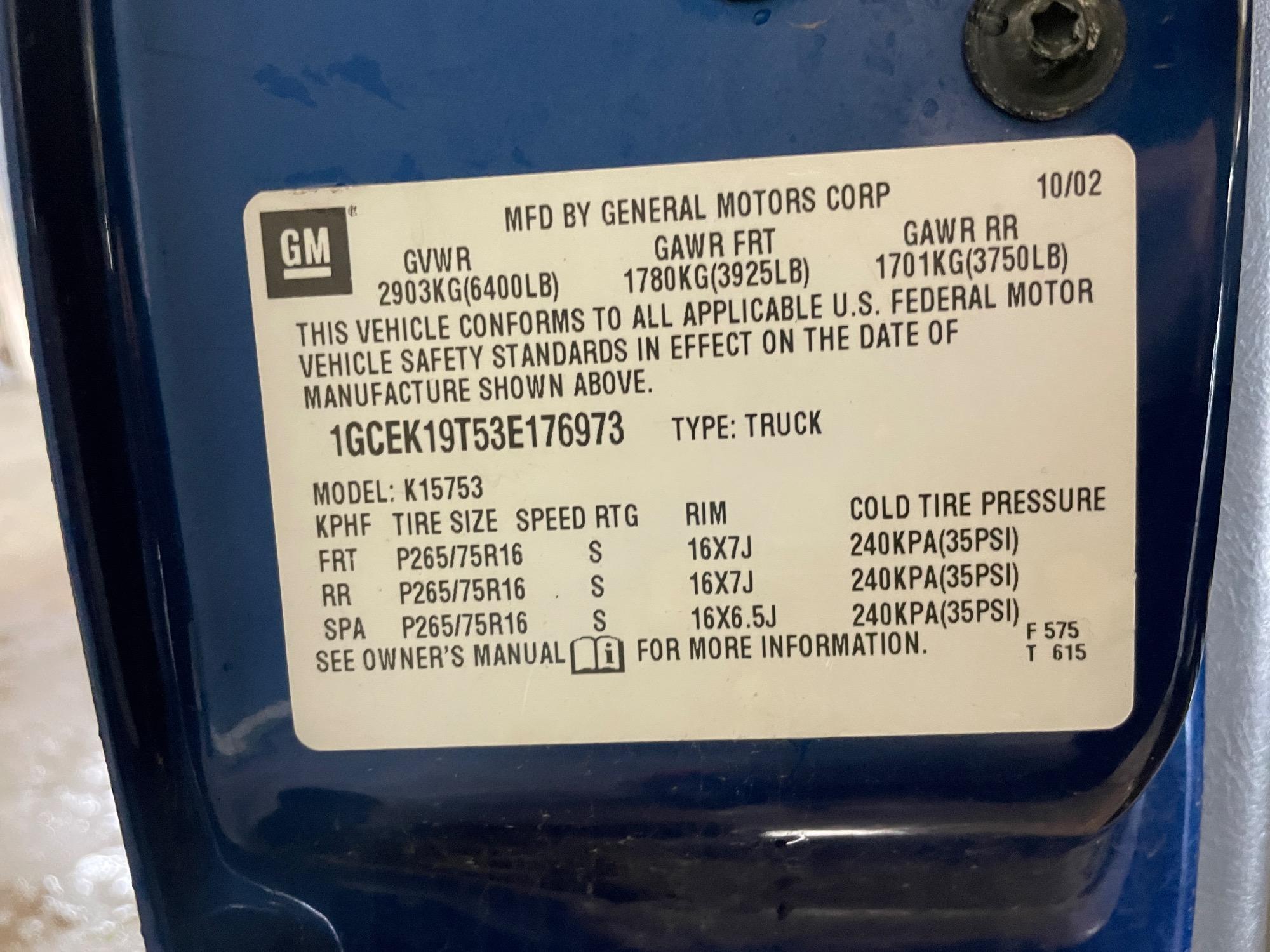 | VIN | 1GCEK19T53E176973 |