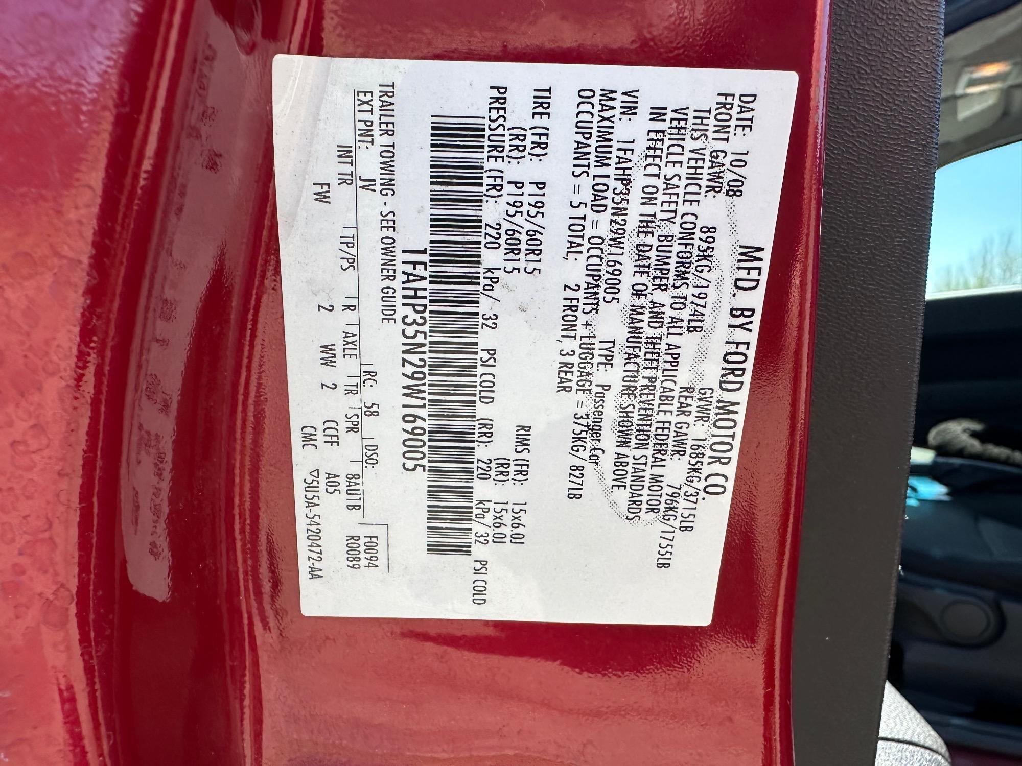 | VIN | 1FAHP35N29W169005 |