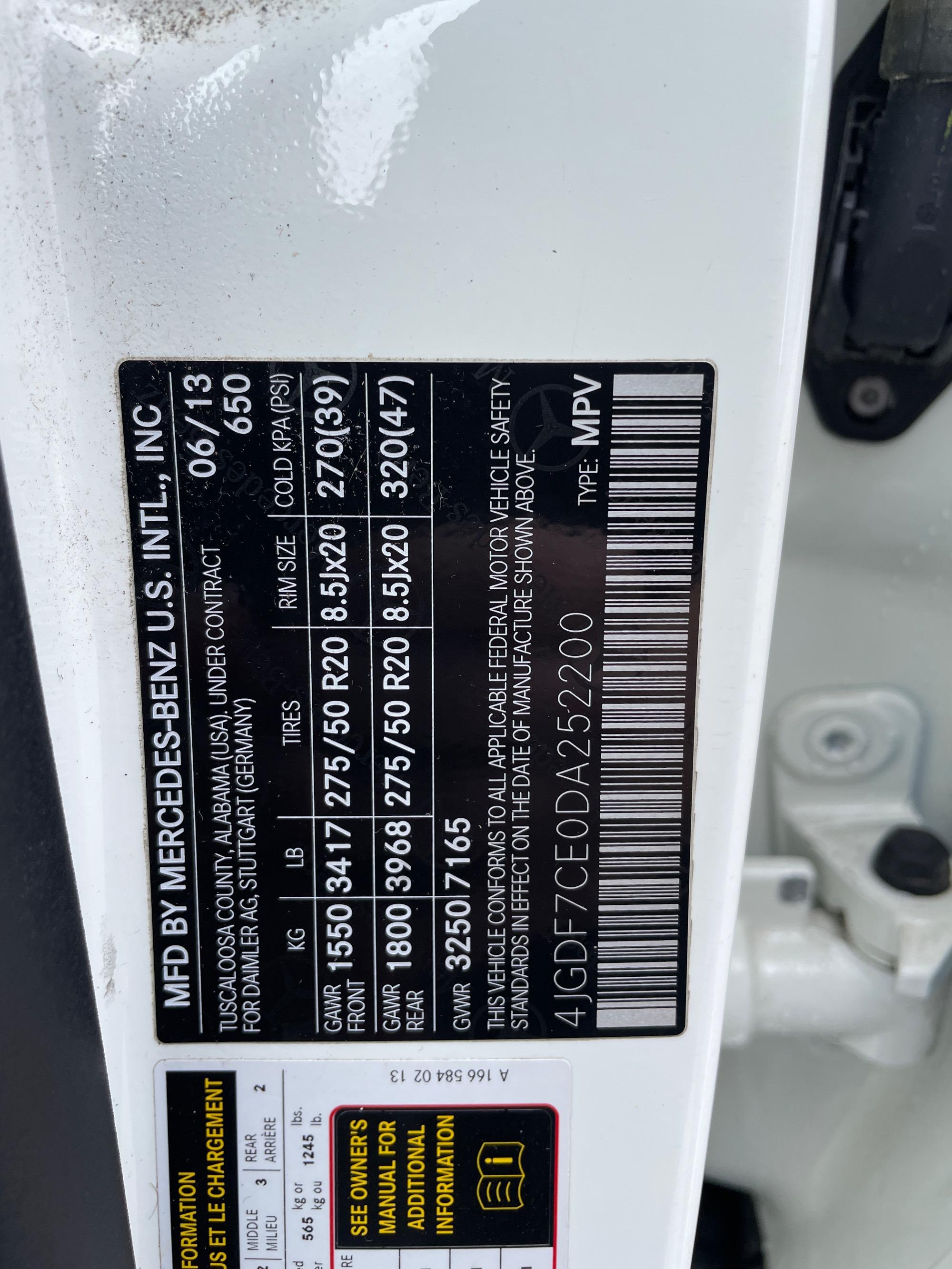 | VIN | 4JGDF7CE0DA252200 |