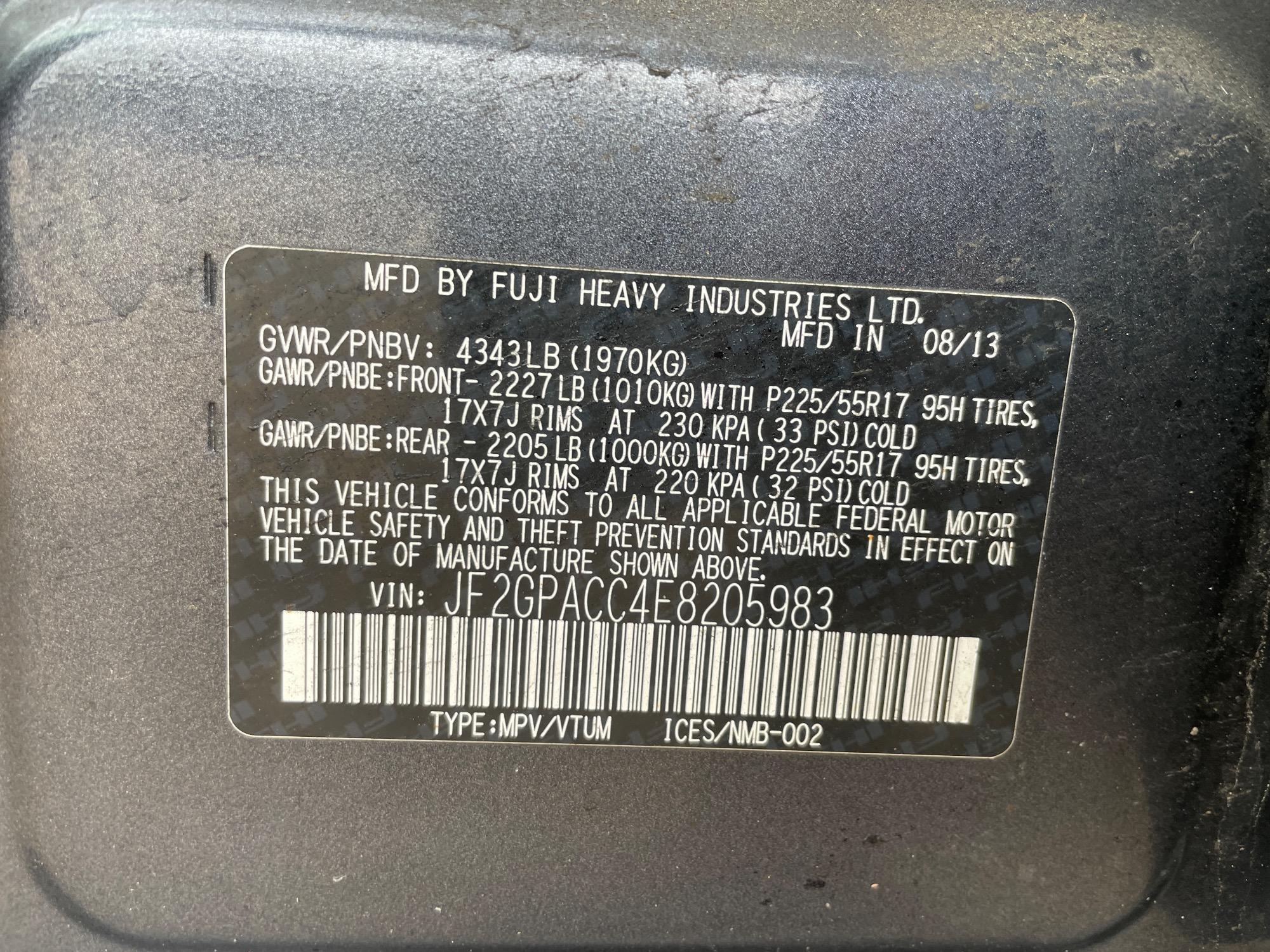 | VIN | JF2GPACC4E8205983 |