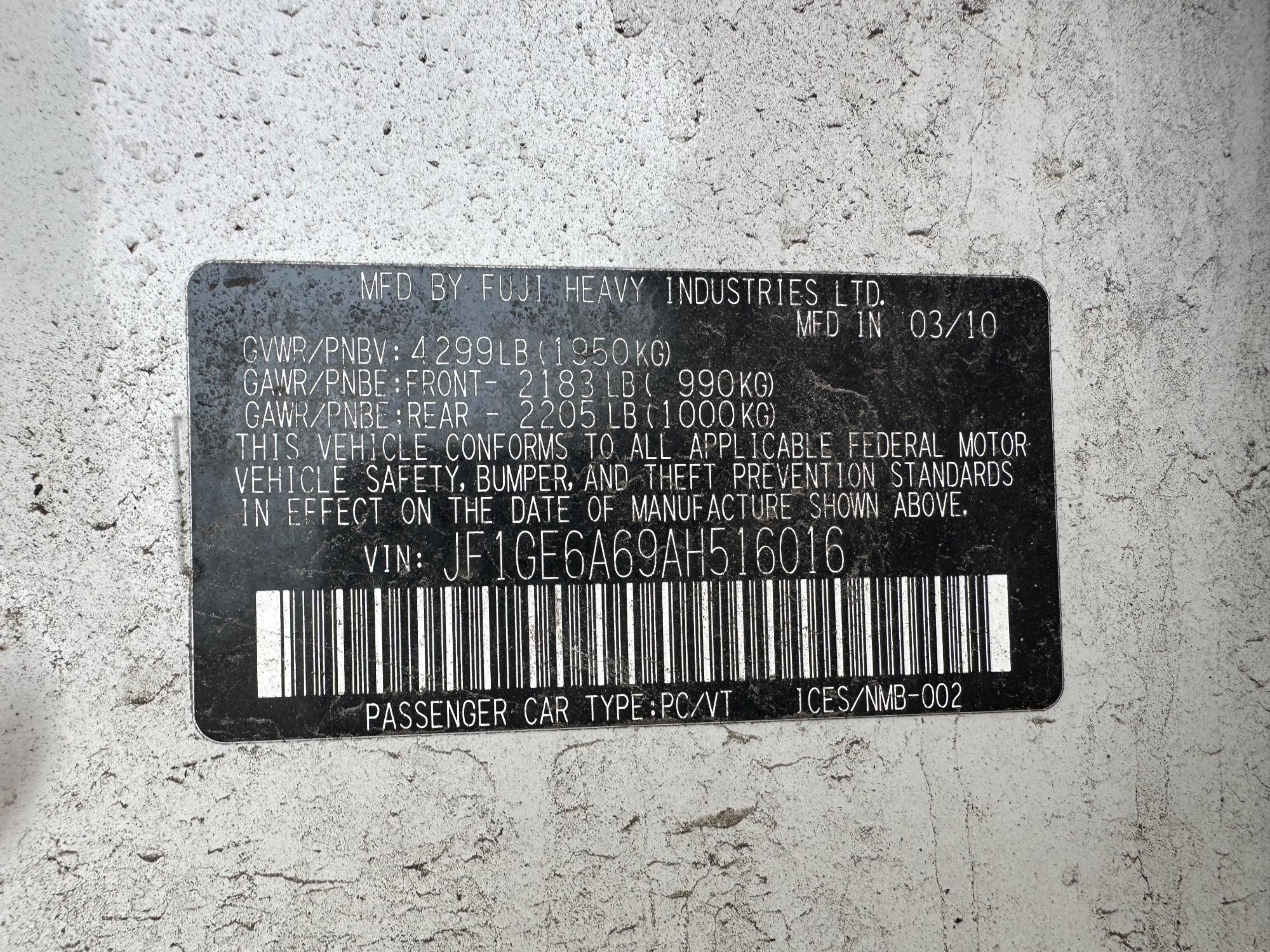 | VIN | JF1GE6A69AH516016 |