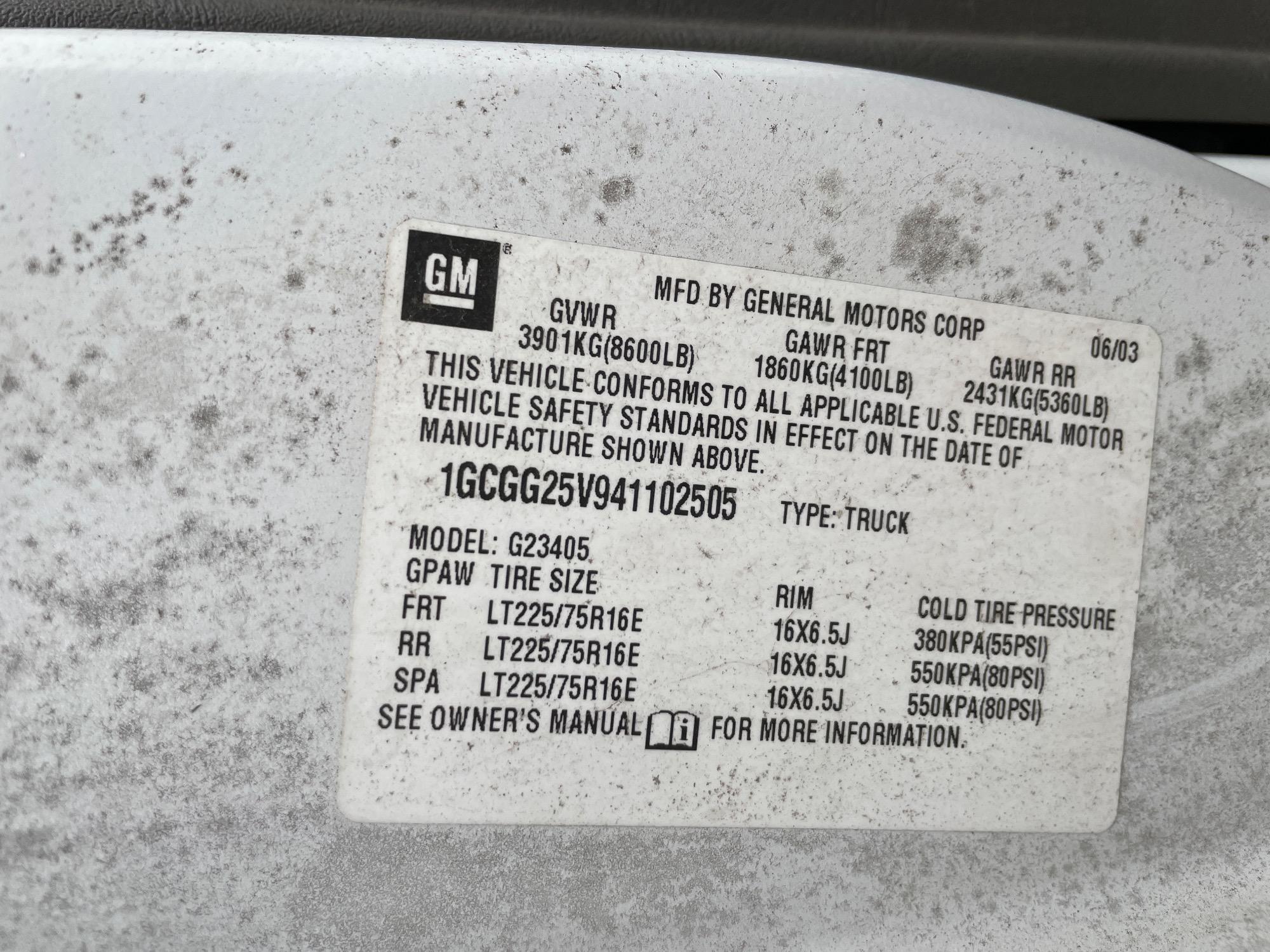 | VIN | 1GCGG25V941102505 |