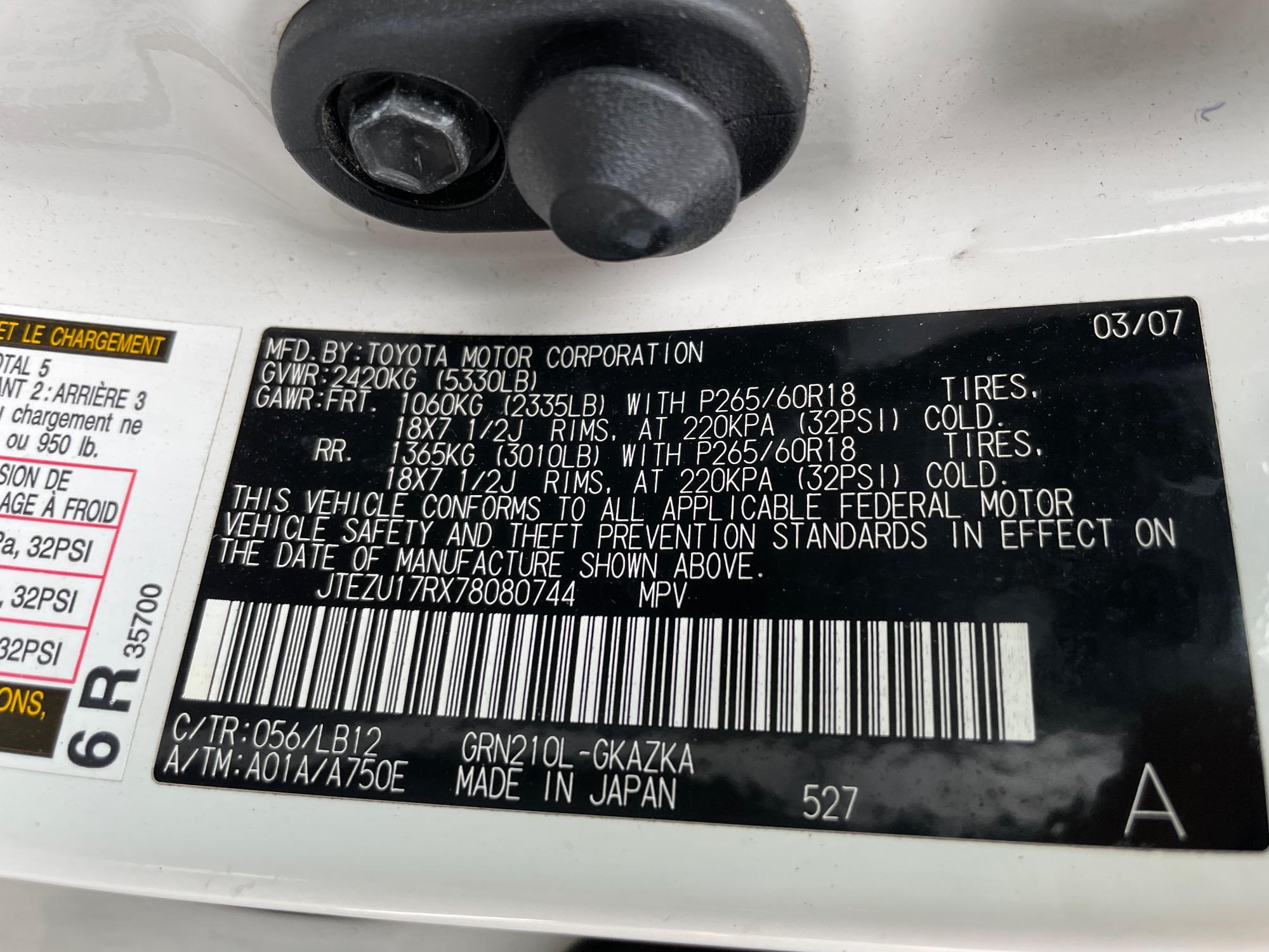 | VIN | JTEZU17RX78080744 |